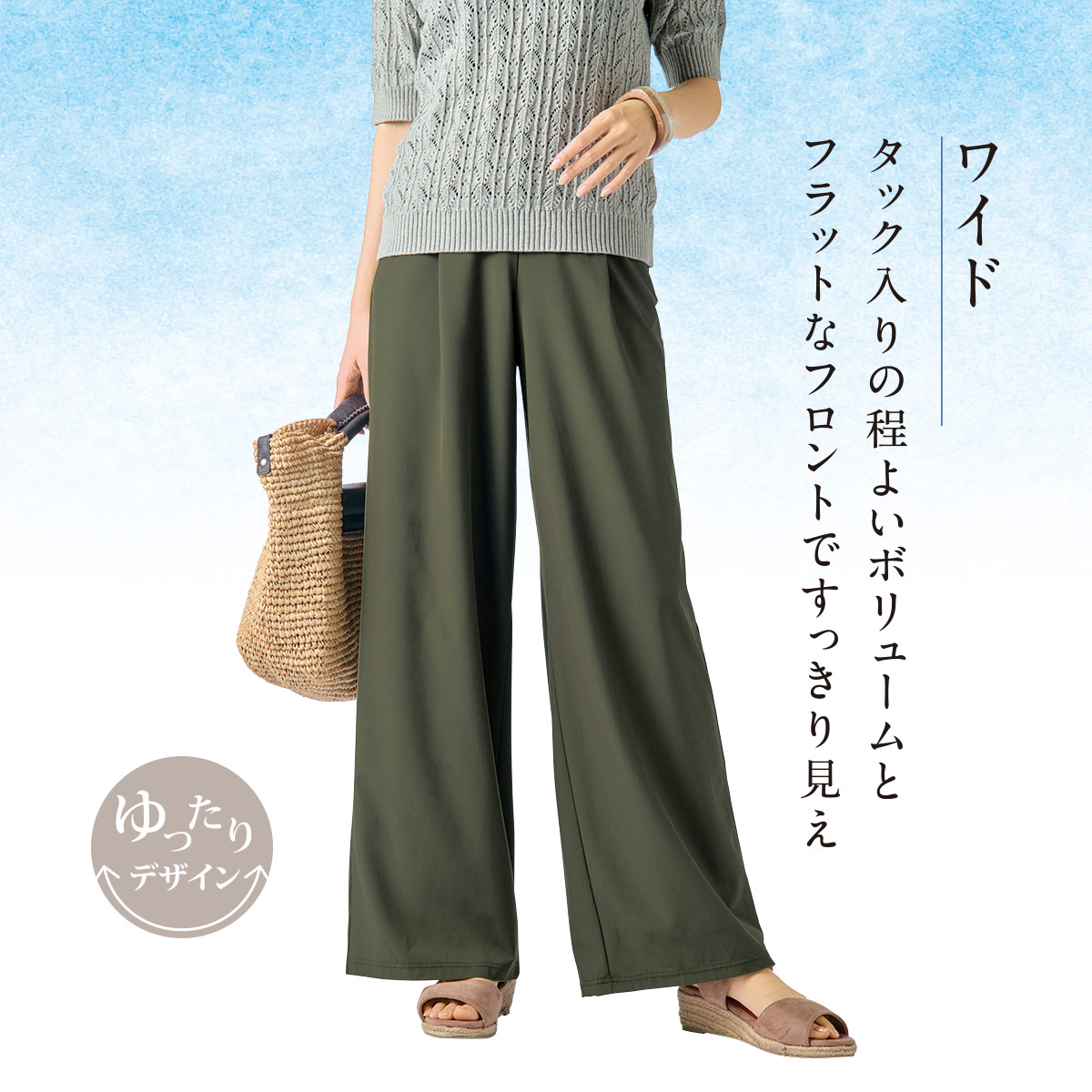 さら軽ストレッチワイドパンツ(日本製・UVカット・接触冷感・吸汗速乾・シワになりにくい・節電対策)