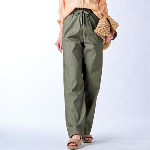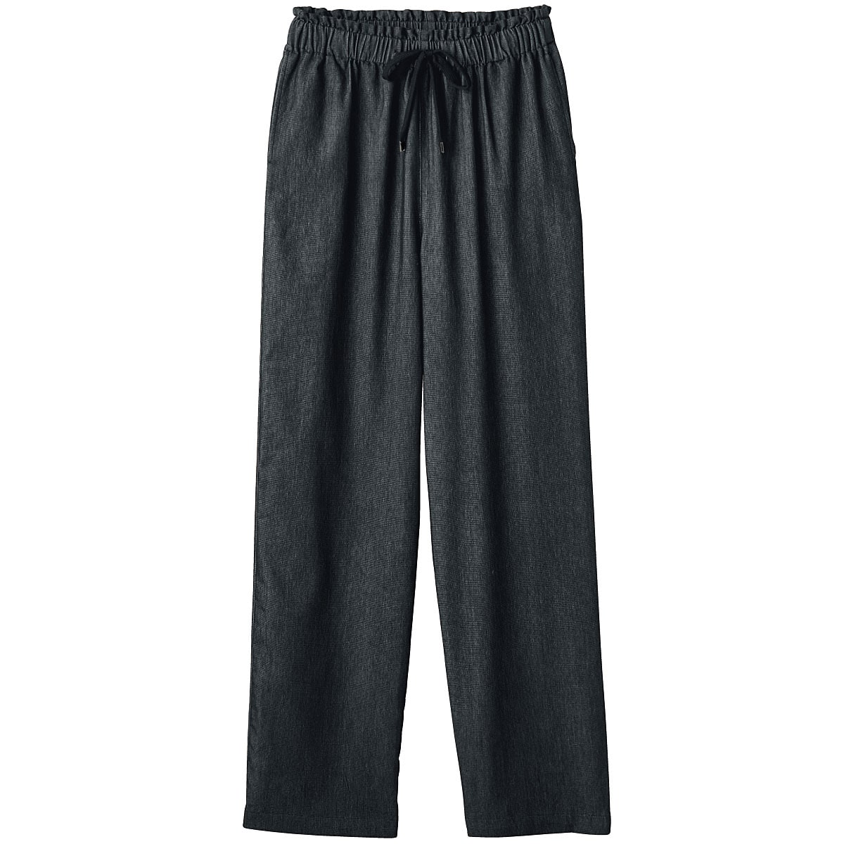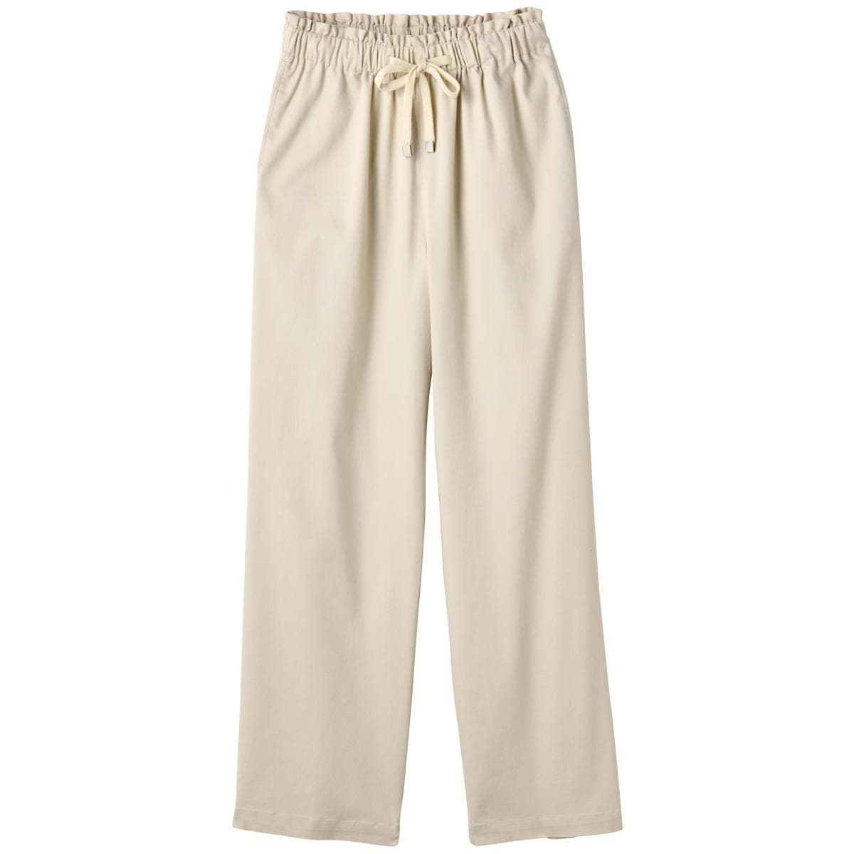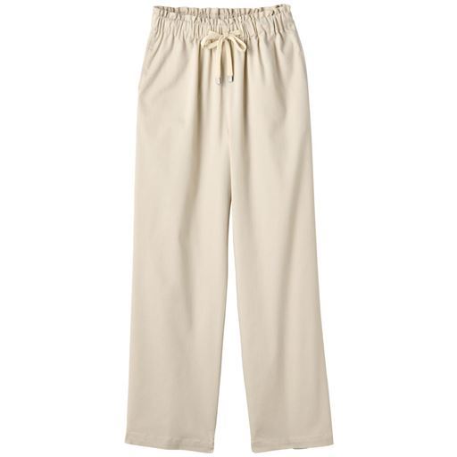 ■[ブラック・インディゴ]綿65%ポリエステル33%ポリウレタン2%[ライトブルー・ベージュ・カーキ]綿60%ポリエステル37%ポリウレタン3%[共通]生地名(織物)●ウエスト総ゴム仕様(スピンドル付き)・前後左右ポケット▼着用時の摩擦等により色移りすることがあります。また、移染しやすいので他のものと分けて洗濯してください▼こちらの商品はゆったりとしたシルエットになっておりますので、お買い求めの際は仕上げ寸法をご確認ください●洗濯機OK●中国製