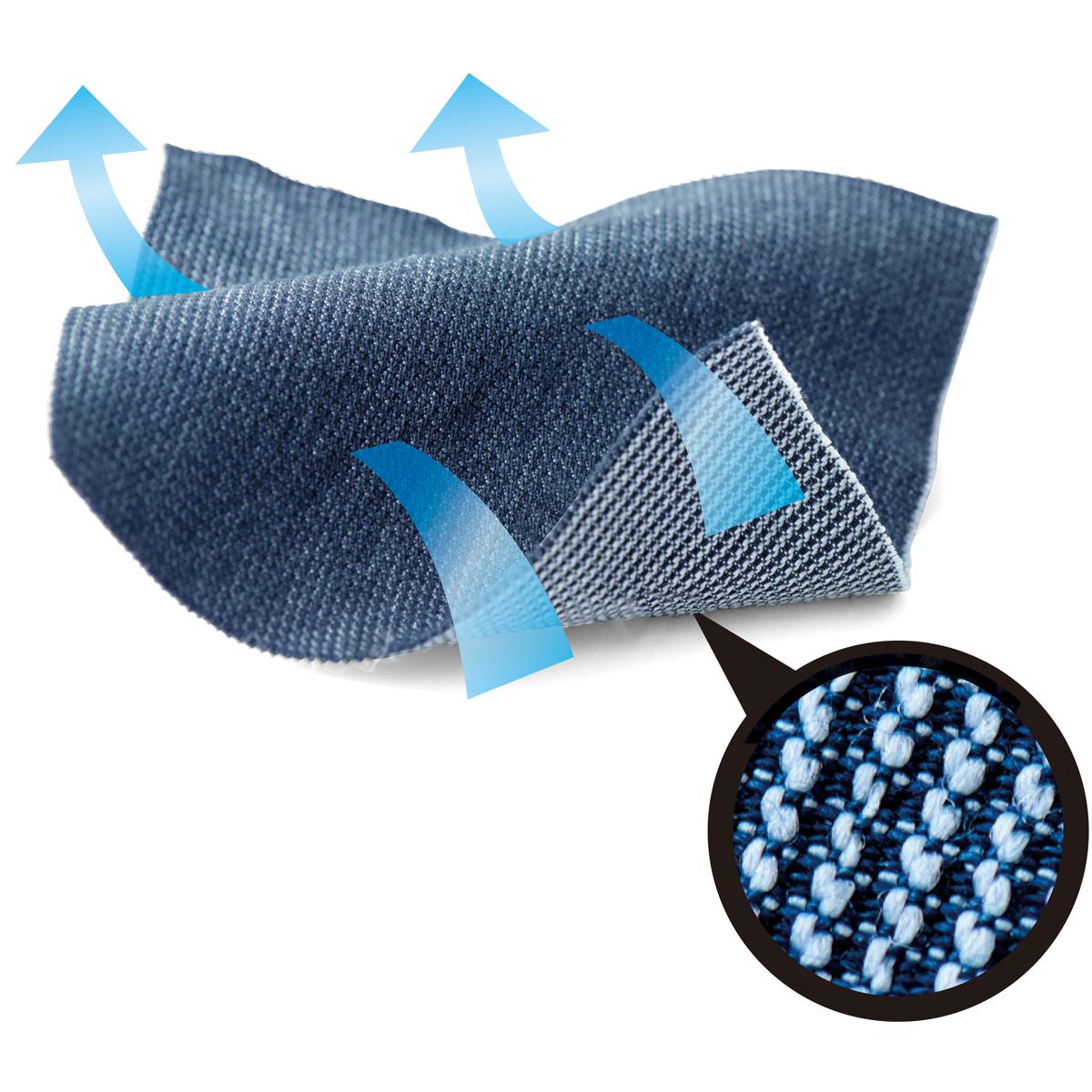 薄くて軽くて通気性のよい裏メッシュ構造。涼しく汗をかいてもドライな肌ざわり。