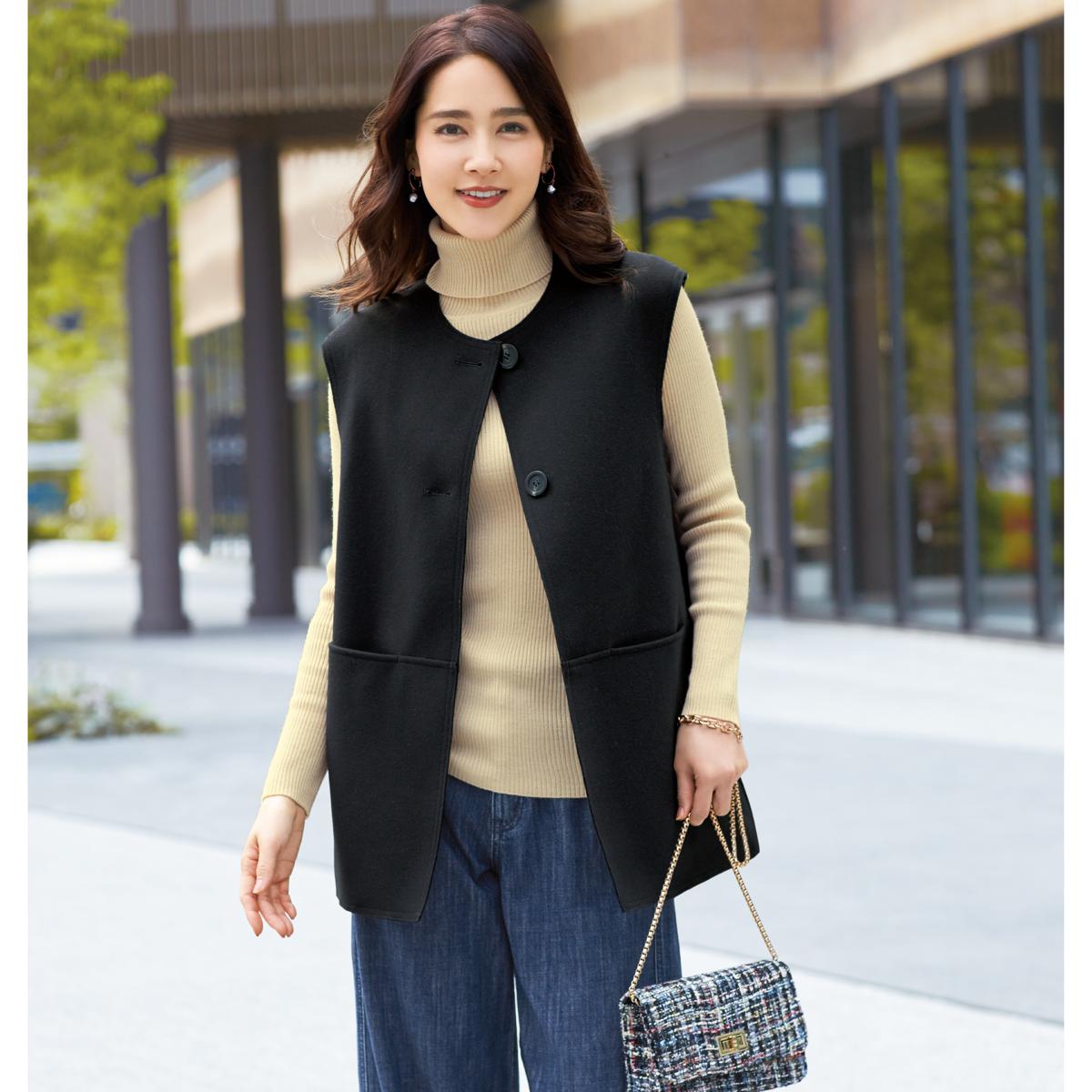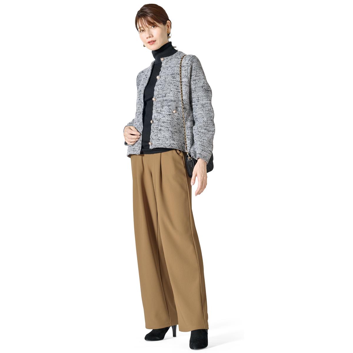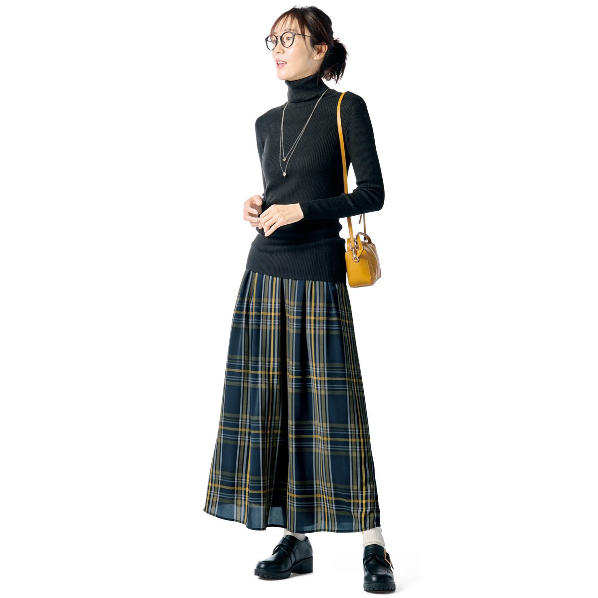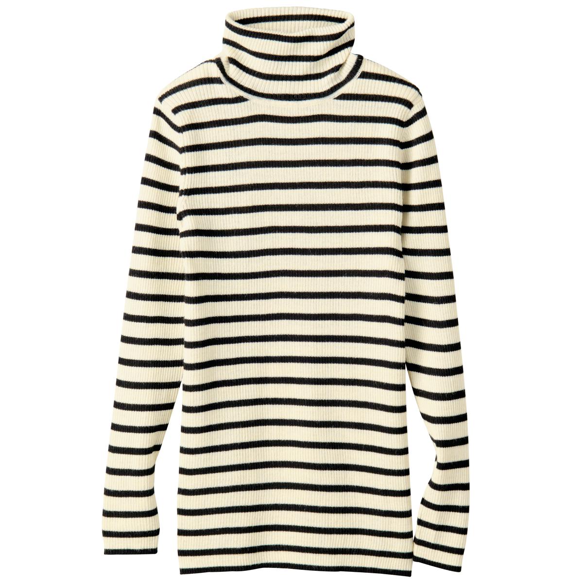 冬の重ね着コーデに活躍するシンプルなタートルネック。程よく体に沿う伸縮性のあるリブ編みだから、締め付け感なく快適。