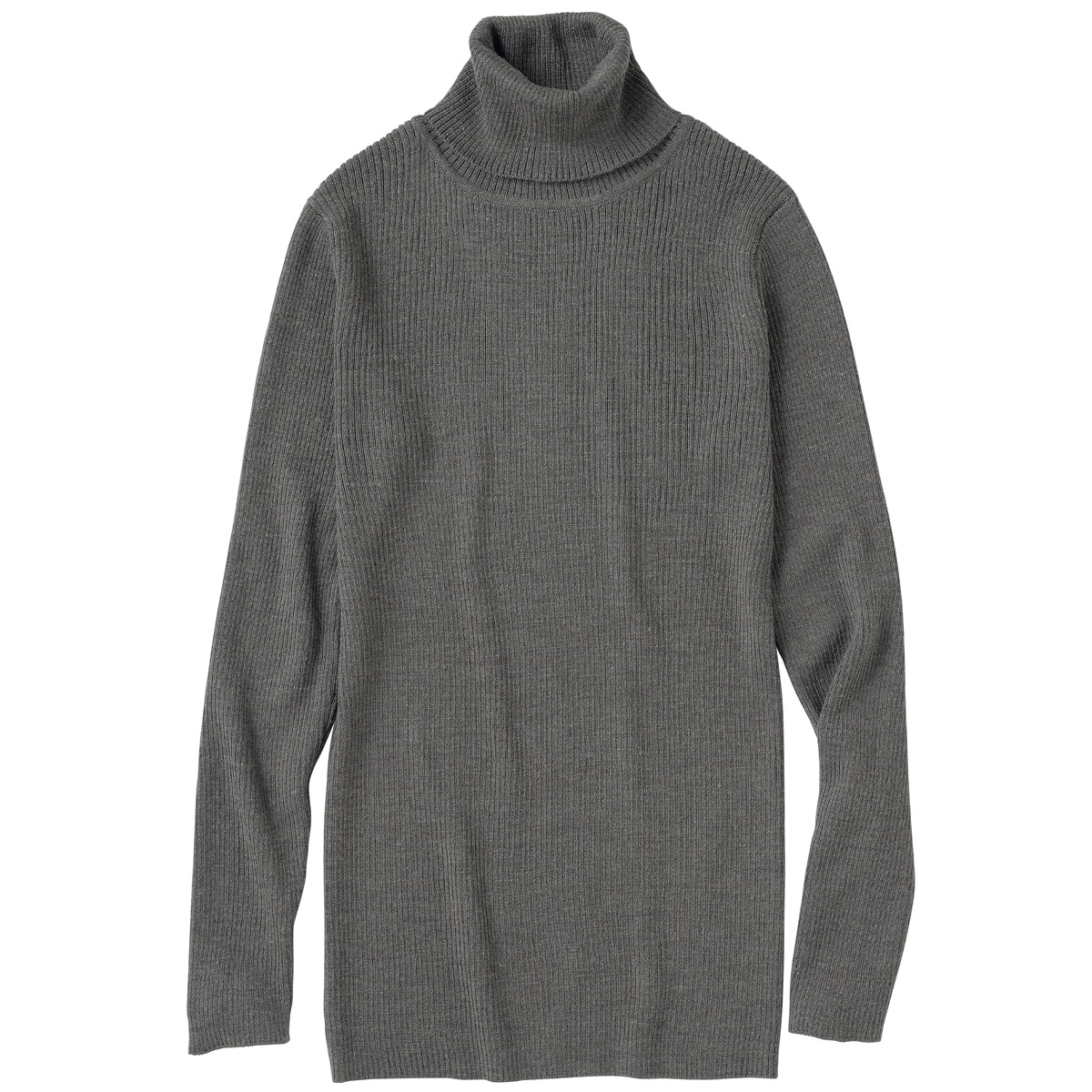 ウール混なのに、ご家庭で洗濯できる。リブ編みで程よく体にフイットする、使いやすいタートルネックセーター