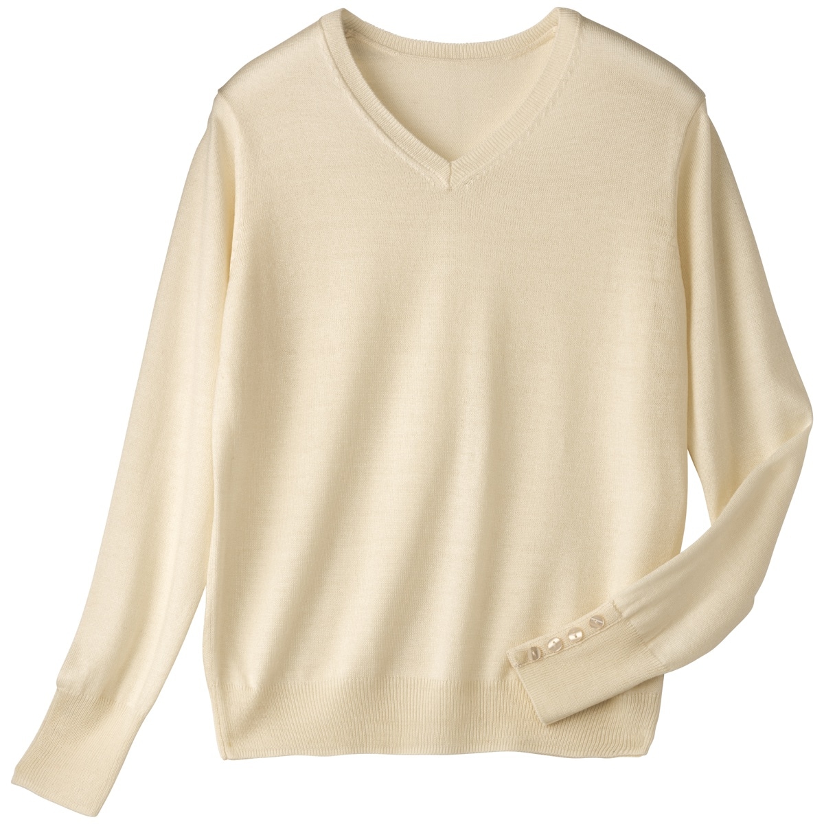 -お買い得ポイント-薄手でやさしく体にフィットする着心地。やや浅めのVネックで衿元が開きすぎず上品な印象に。-デザイン-選ぶのが楽しい5色展開です。長めの袖口リブに並べた同色ボタンがさりげなく新鮮なアクセントを添えて。-素材特徴-ふんわりあったか、なめらかな風合いウール混なのにご家庭で洗濯ができるので、簡単に扱えて経済的。