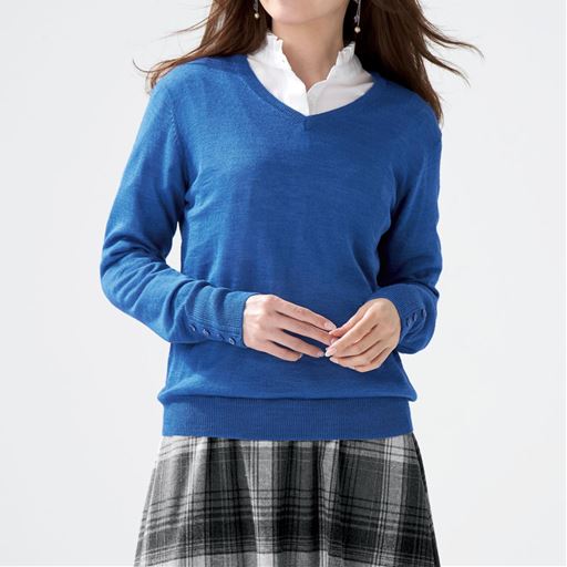 -お買い得ポイント-薄手でやさしく体にフィットする着心地。やや浅めのVネックで衿元が開きすぎず上品な印象に。-デザイン-選ぶのが楽しい5色展開です。長めの袖口リブに並べた同色ボタンがさりげなく新鮮なアクセントを添えて。-素材特徴-ふんわりあったか、なめらかな風合い。ウール混なのにご家庭で洗濯ができるので、簡単に扱えて経済的。