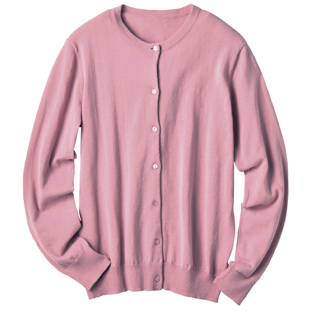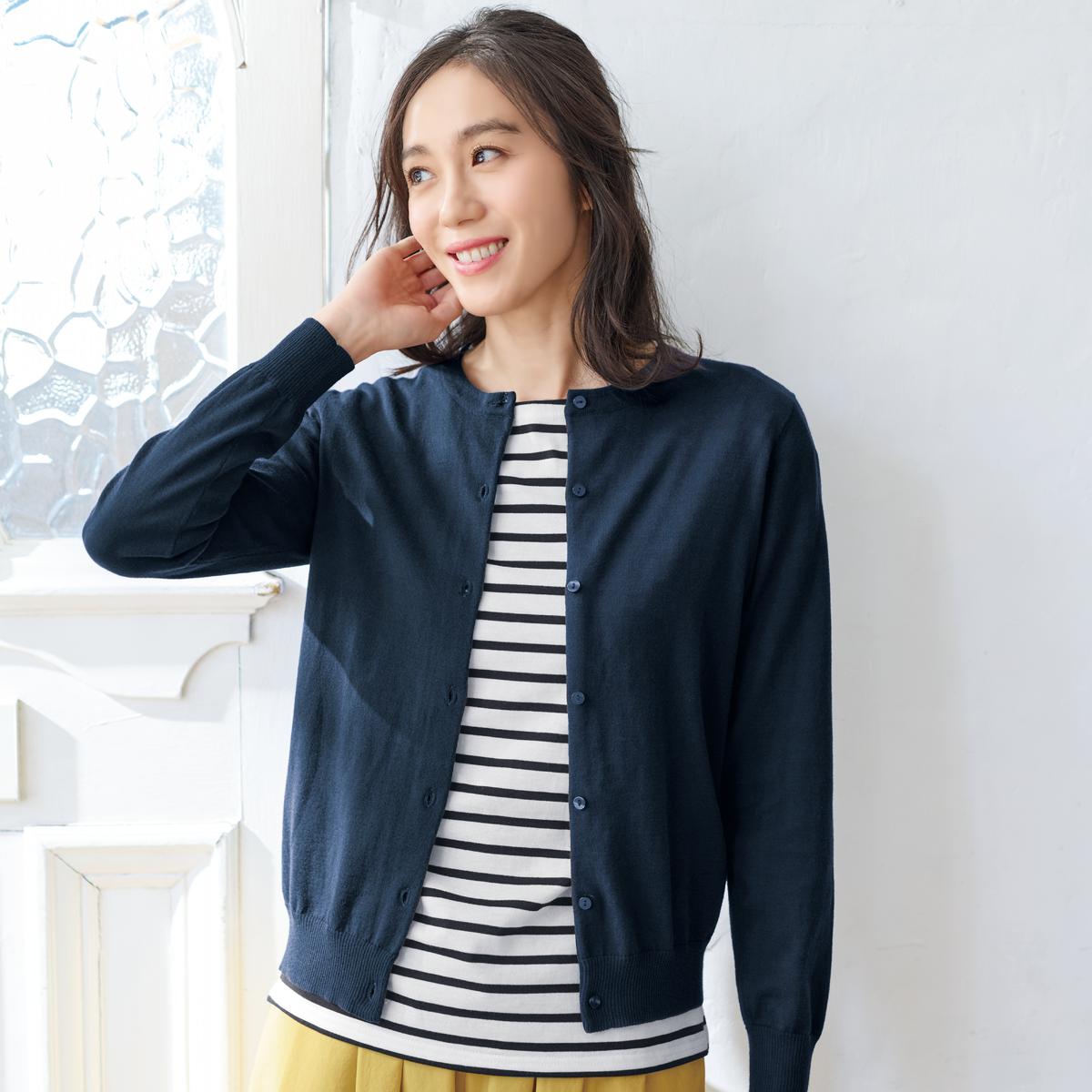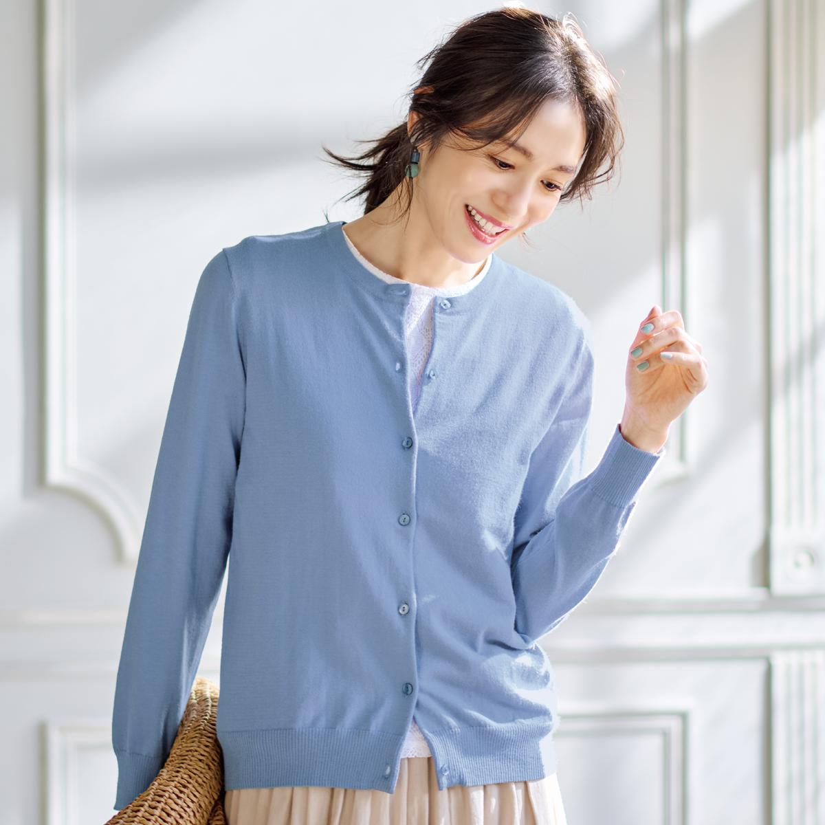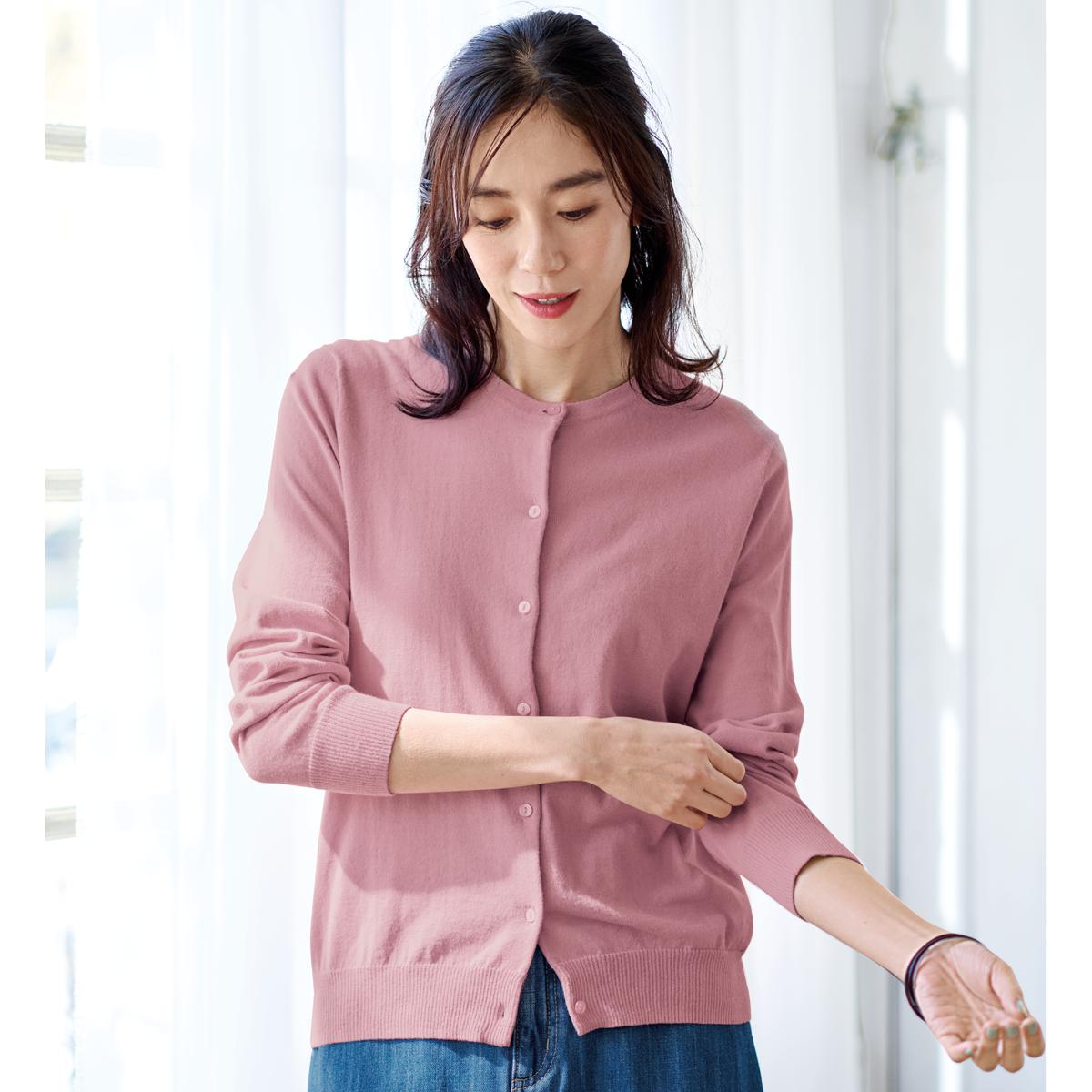 -お買い得ポイント-きれいめにもカジュアルにも着まわしやすいクルーネックカーディガンです。前を閉じればプルオーバー風にも着られます。-デザイン-明るい3色とシックな3色の選べる6色をラインアップ。-素材特徴-日差しから肌を守ってくれるUVケア機能付きの生地は、薄手でサラッとした肌ざわりです。洗濯機で洗えて便利!