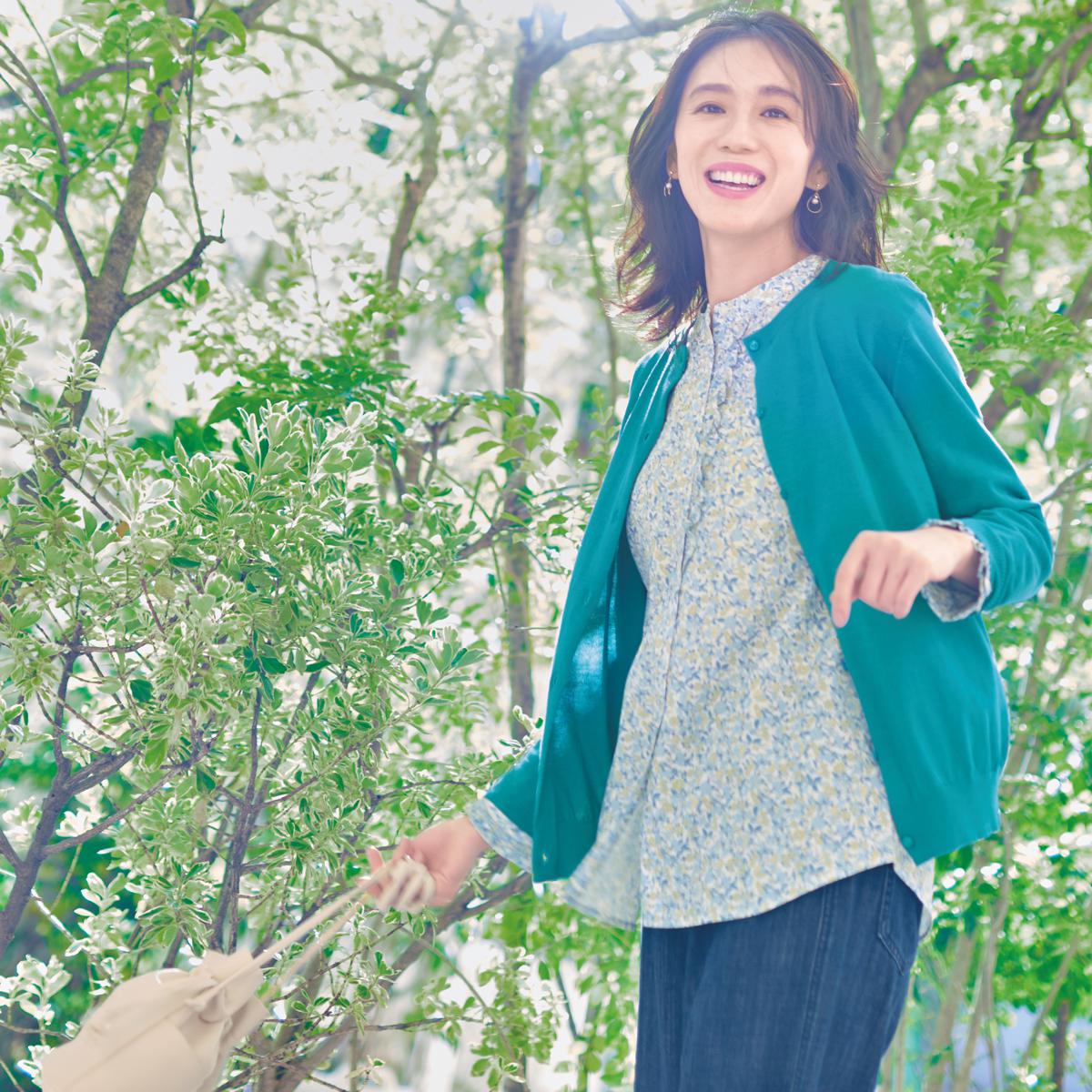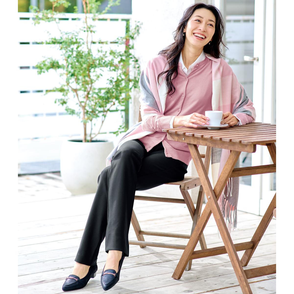 UV・寒暖差対策に手離せない綿混カーディガンは、袖幅をはじめ全体的にゆったり感をアップ。より着やすいサイズ感になって袖のあるインナーでも腕はゆったり、前ボタンを留めてもきつくない!