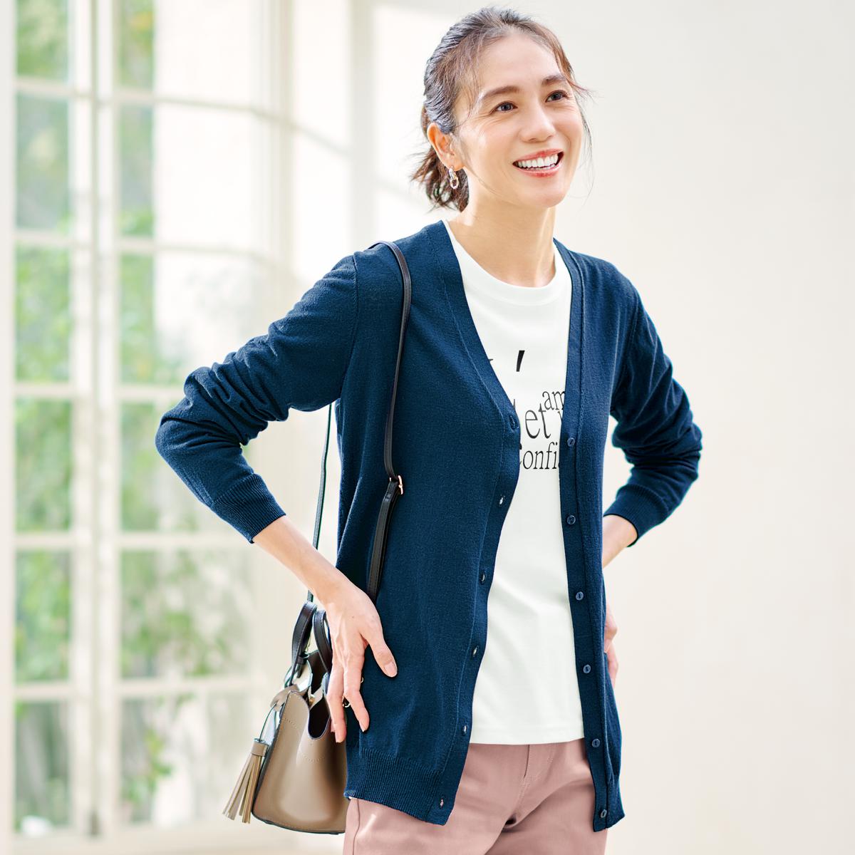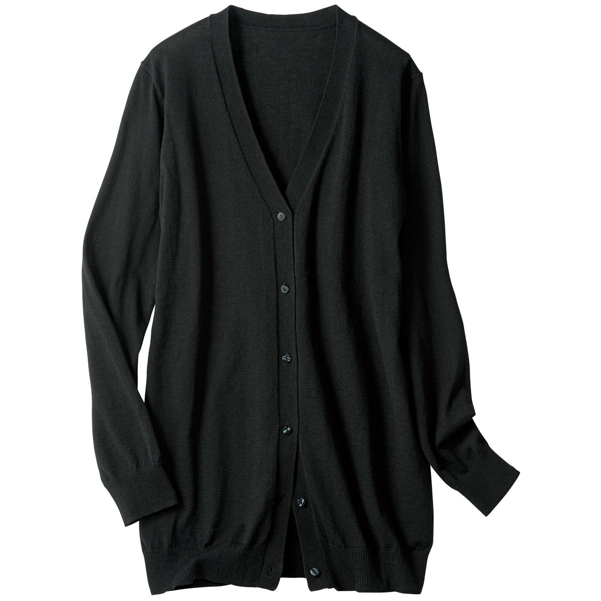 -お買い得ポイント-袖幅をはじめ全体的にゆったり感をアップ。より着やすいサイズ感になって袖のあるインナーでも腕がゆったり、前ボタンを留めてもきつくない!-デザイン-腰まわりまで包み込むやや長めの丈が縦のラインを強調して、すっきり細見えするVネックロングカーディガンです。-素材特徴-UV90%カット機能に加え、吸汗速乾機能付きでサラッと快適。洗濯機で洗えてお手入れ簡単です。