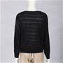 ―お買い得ポイント―ボーダー柄の透かし編みに同系色のラメでフェミニンさと華やかさがアップ!―デザイン―ゆったりとした着心地なのにルーズに見えない女性に嬉しいシルエット!衿元は開き過ぎないデザインで、裾がリブなのでウエストまわりにゆとりを持たせてさり気なくカバーできるニット―素材特徴―アクリル混だから柔らかい肌触り上品なラメの入った糸でボーダーに編み上げ