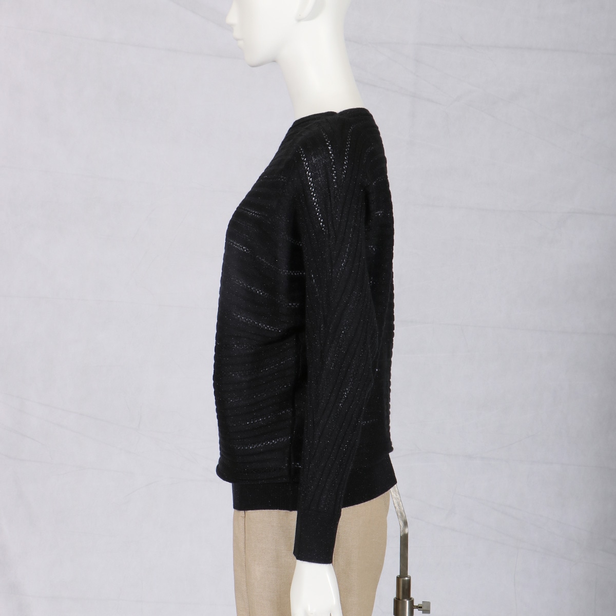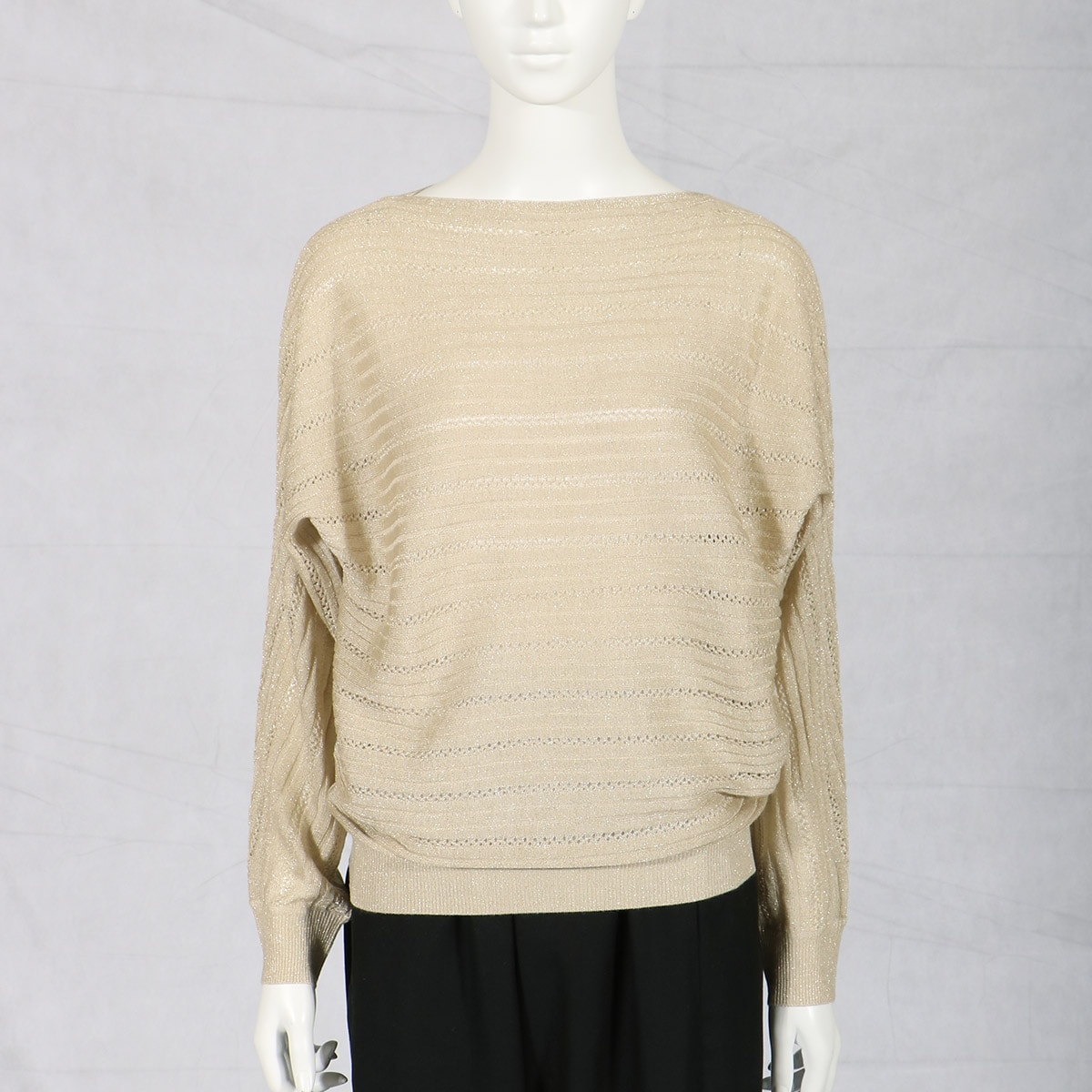 透かし編のやわらかな素材にさりげないラメで上品さを加えたドルマンシルエットのニット。