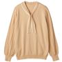 -お買い得ポイント-配色のボウタイにきちんと感が漂うきれいめニット。ボウタイの中央のパールビーズピンが女性らしさを演出します。-デザイン-編み地の変化でプリーツ風に仕上げたパフスリーブも上質感を引き立てます。ボウタイの中央をパールビーズピンで留める仕様。-素材特徴-優しいコットンの肌ざわりにシルクのなめらかさをプラスした上品なハイゲージニットです。洗濯機OKなので、デイリー使いできるのも嬉しいポイント!