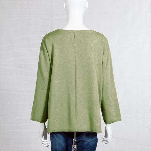 ーお得ポイントーシンプルなのに編み地やシルエットにこだわった一枚で着映えるきれいめニットです。ーデザインーリラクシー感と抜け感のあるドロップショルダーで肩周りすっきり。前後に入れたセンターラインで細身え効果も期待できます。ー素材特徴ー張り感がありしっかりした総針編み