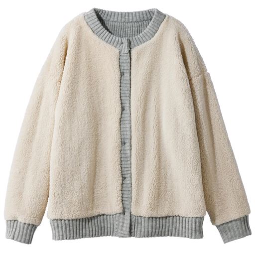 ■[グレー]アクリル100% [モカベージュ]ポリエステル65%アクリル35% [共通]生地(前身頃/ケーブル編 後身頃・袖部分/片畦編) 裏側/ポリエステル100%(ボア)▼商品によって柄の位置が異なります●洗濯機OK●中国製