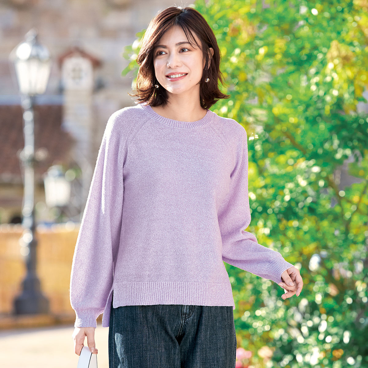 -お買得ポイント-明るい印象のきれいめカラーで、一気にコーディネートを華やかな雰囲気に。-デザイン-シンプルで可愛さが漂うパフスリーブデザイン。後丈長めで、脇にスリットが入っているので、軽やかで動きやすく、体型カバーも叶います。-素材特徴-素肌にも優しい、シャリっとした心地よい肌触りのニットです。洗濯機で洗えてお手入れ簡単です。