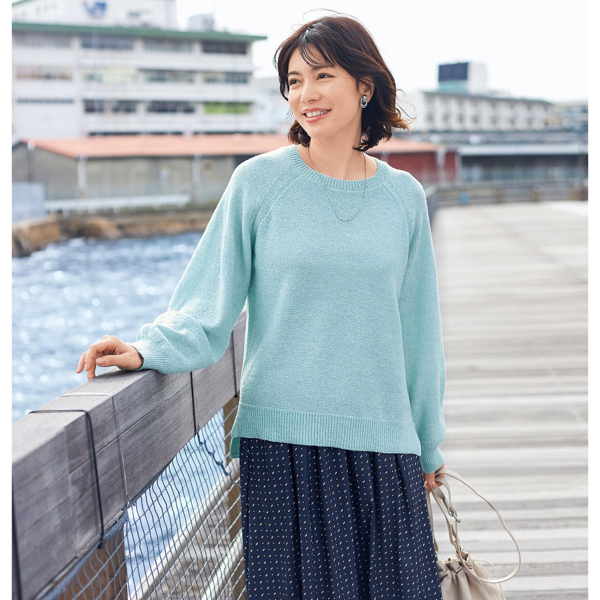 定番アイテムに「今」の気分をプラスする、カラーミックス調ニット♪オフホワイトの糸をMIXした優しい色合いになっています。