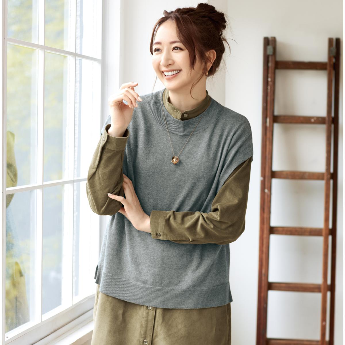 手持ちのインナーと合わせれば、一味違う印象に。上質感のある風合いが大人の気品を醸し出すシンプルなデザインのハイゲージニットです。