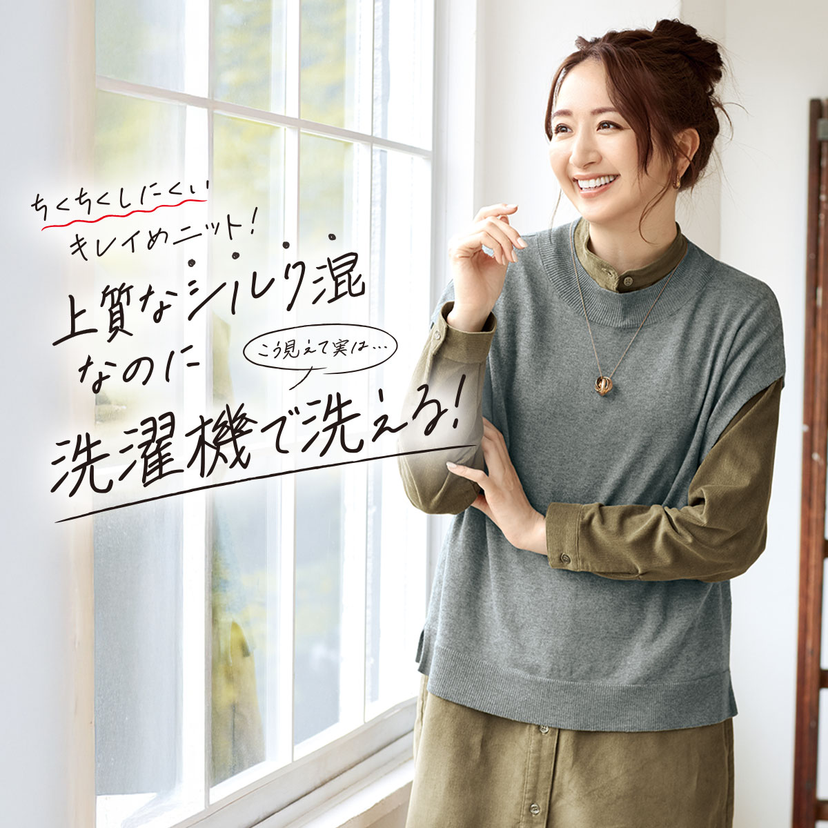 ちくちくしにくいキレイめニット!上質なシルク混なのに洗濯機で洗える!
