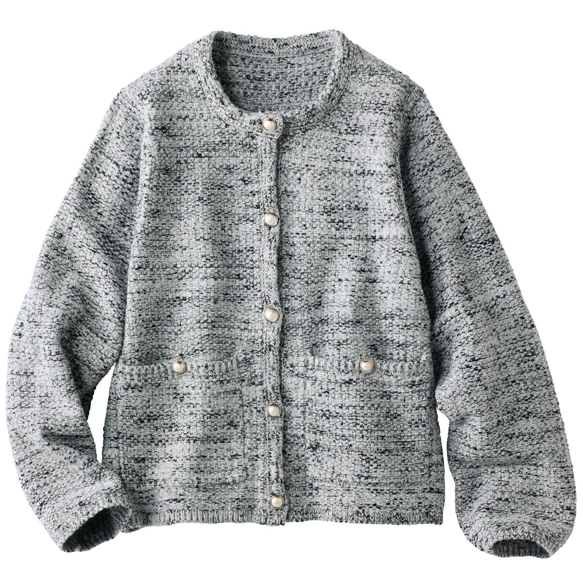 ブラック系 ラメ糸がほのかに煌めいて、サッと羽織るだけで優美なムードを醸し出すツイード見えカーディガン。