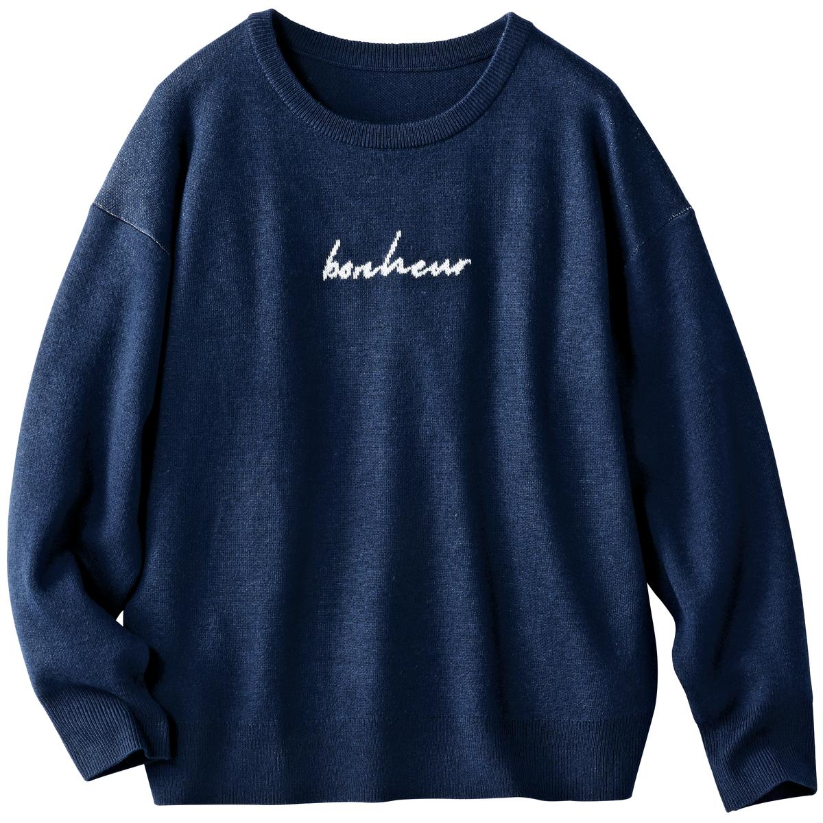 ネイビー 生地拡大ロゴ意味「bonheur」:幸運