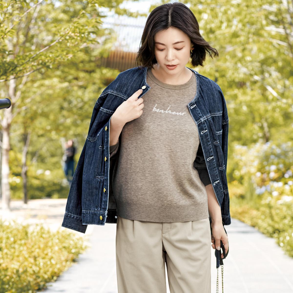 程よい薄手のニットで着ぶくれしにくく、アウターも合わせやすいです。