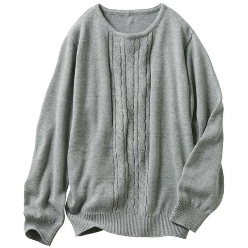 -お買い得ポイント-アウターを羽織ってもセンターのケーブル柄がチラ見えして、おしゃれ感がアップします。-デザイン-フロントのケーブル編みがニットスタイルを格上げします。シンプルなデザインなので、コーディネートしやすいのも嬉しいポイント。-素材特徴-優しい肌あたりの綿100%ニット。着ぶくれしにくい薄手の素材なので1枚でも、重ね着でも長く着られます。
