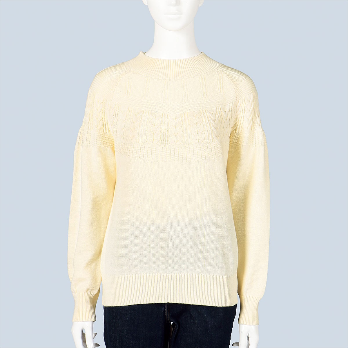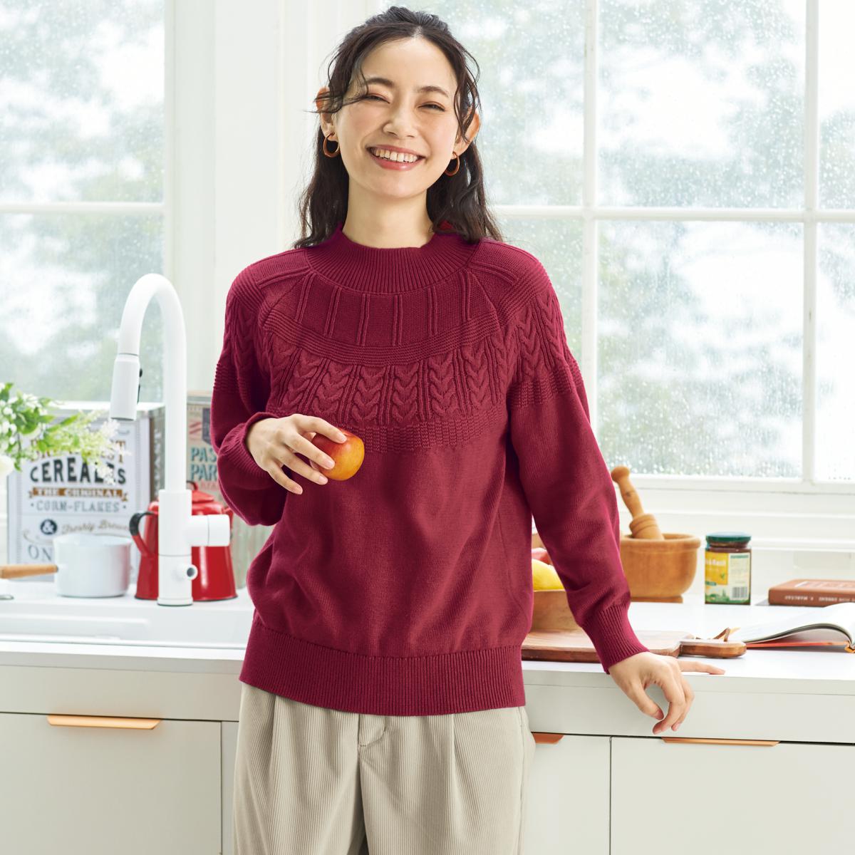 -お買い得ポイント-ほっこり過ごす冬に着たい一枚で華やかな求心柄プルオーバーです。暖かくおしゃれな印象を与えつつ、全体に柄が主張されすぎず着回しやすいのもうれしいポイントです。-デザイン-程よいフィット感が快適。首元をカバーするプチハイネックでひんやりもおさえます。-素材特徴-優しい肌あたりの綿100%ニット。着ぶくれしにくい薄手の素材なので1枚でも、重ね着でも長く着られます。