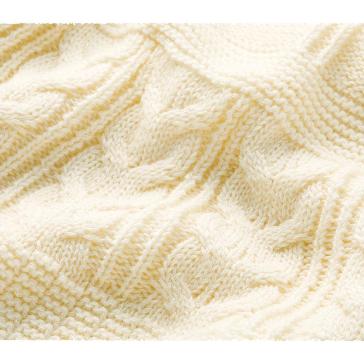 優しい肌あたりの綿100%ニット。着ぶくれしにくい薄手の素材なので1枚でも、重ね着でも長く着られます。