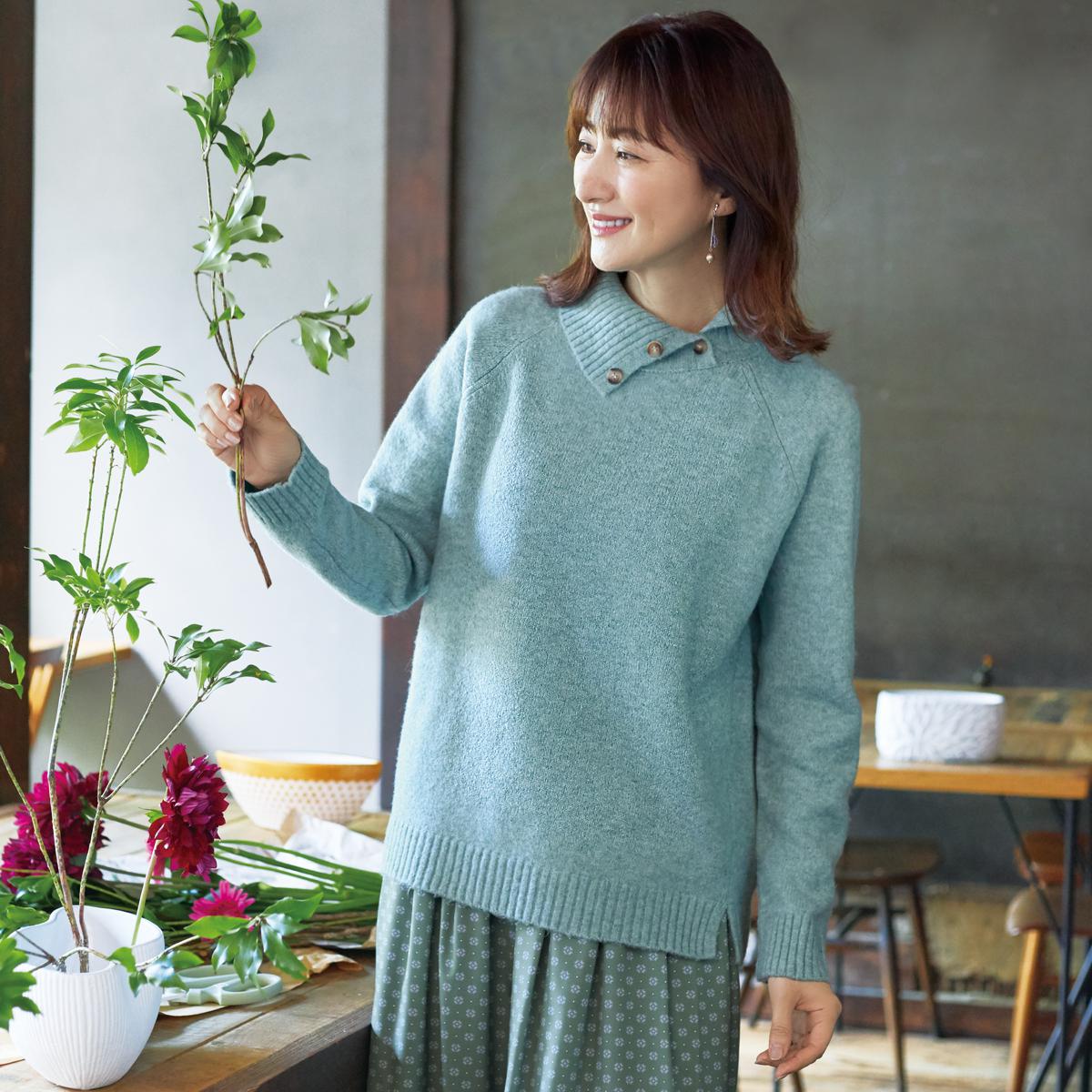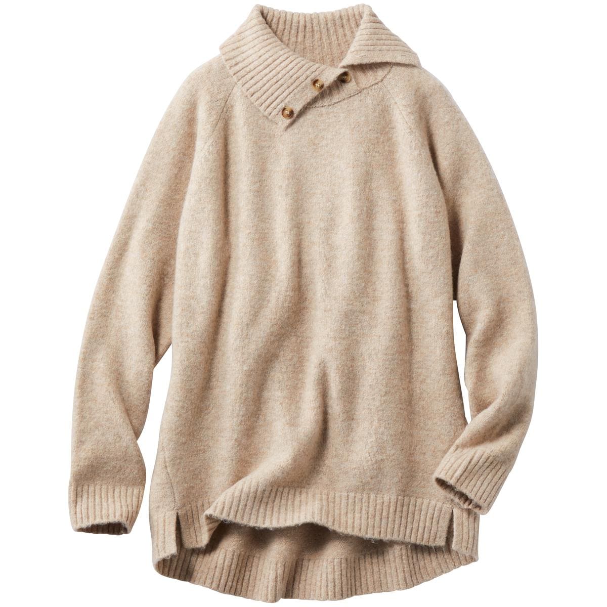 -お買い得ポイント-ミックス調の糸で軽やかに仕上げた柔らかな肌ざわりのニットチュニック。衿元の折り返しデザインが華やかに、暖かくしてくれます。-デザイン-後ろ長めのチュニック丈が、ヒップをカバーしてリラクシーな着心地です。-素材特徴-洗濯機OKなので、気がねなくケアができるのが特徴です。