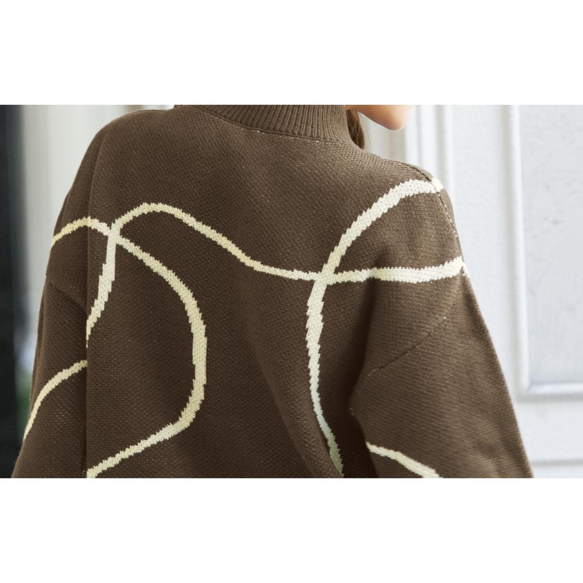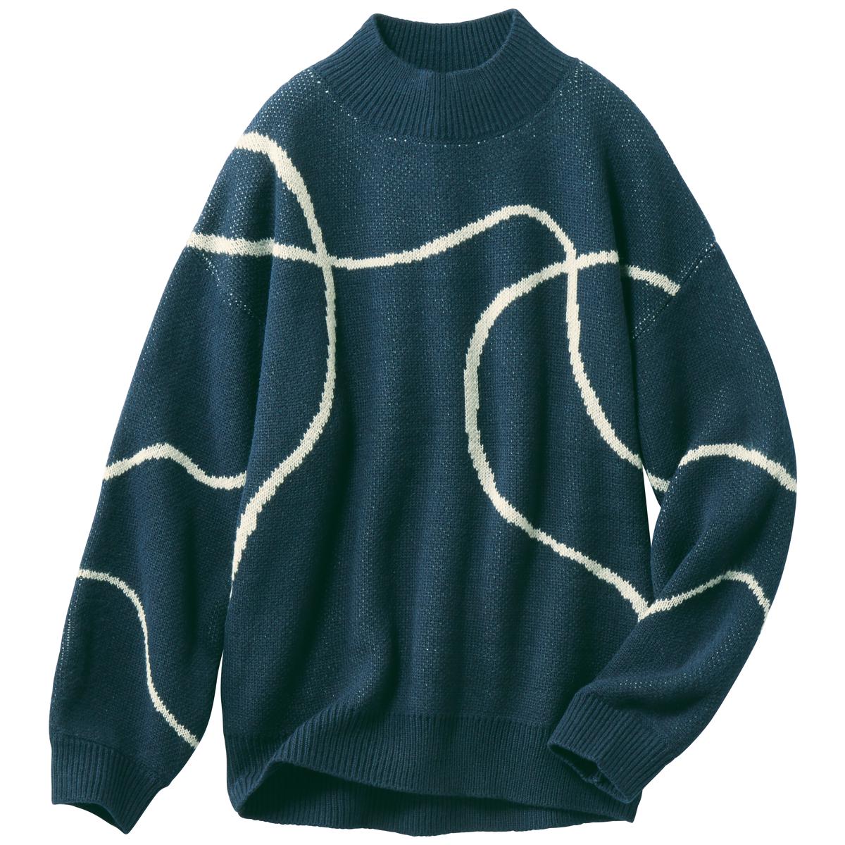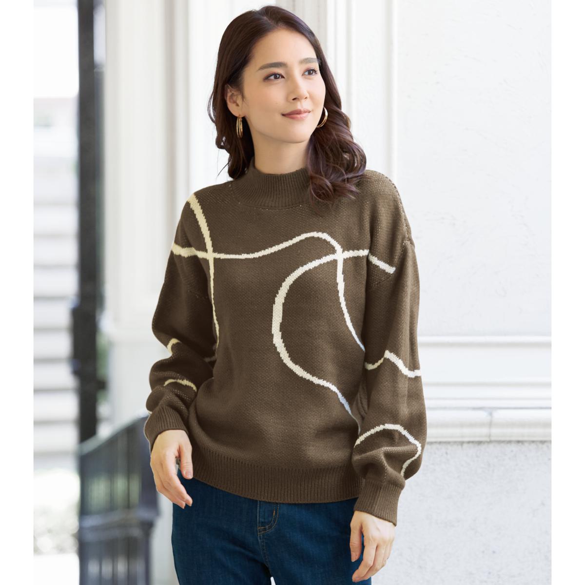-お買い得ポイント-一枚で着映えるニュアンスラインのニットプルオーバー。前後に描いたラインに遊び心が漂います。-デザイン-ちびハイネックで首回りもカバー。ドロップショルダーでゆったり楽に着ていただけます。-素材特徴-ふんわりした手触りが心地良い。