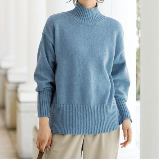 -お買い得ポイント-一枚で着映えるこだわりのディテールデイリーに使えるシンプルデザインも魅力-デザイン-高めのハイネックと長めの袖口リブがポイント-素材特徴-ふんわりした手触りが心地良い。