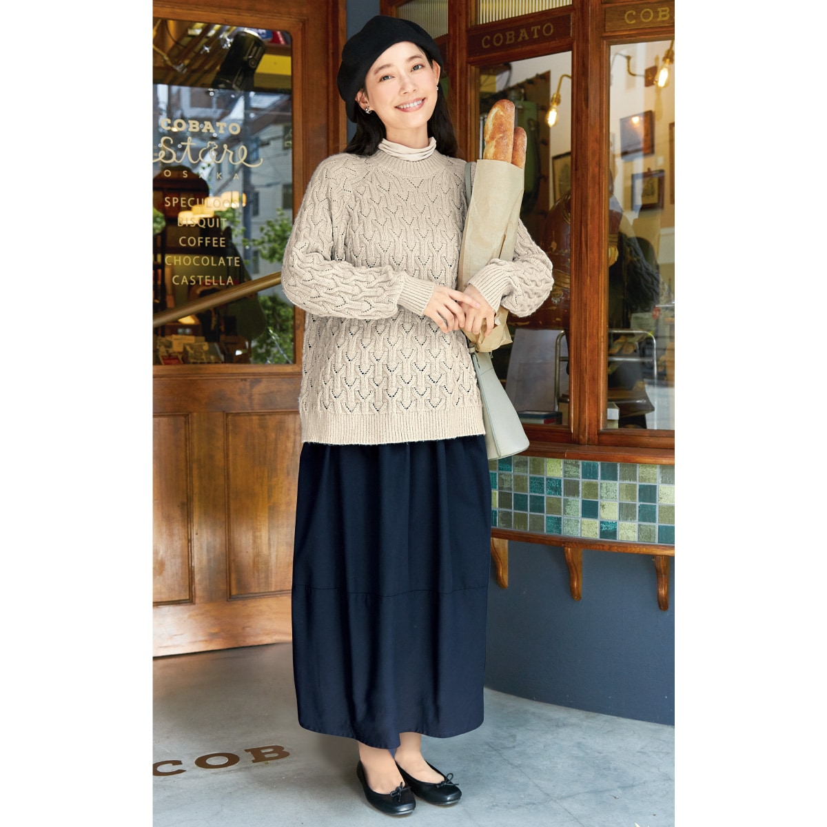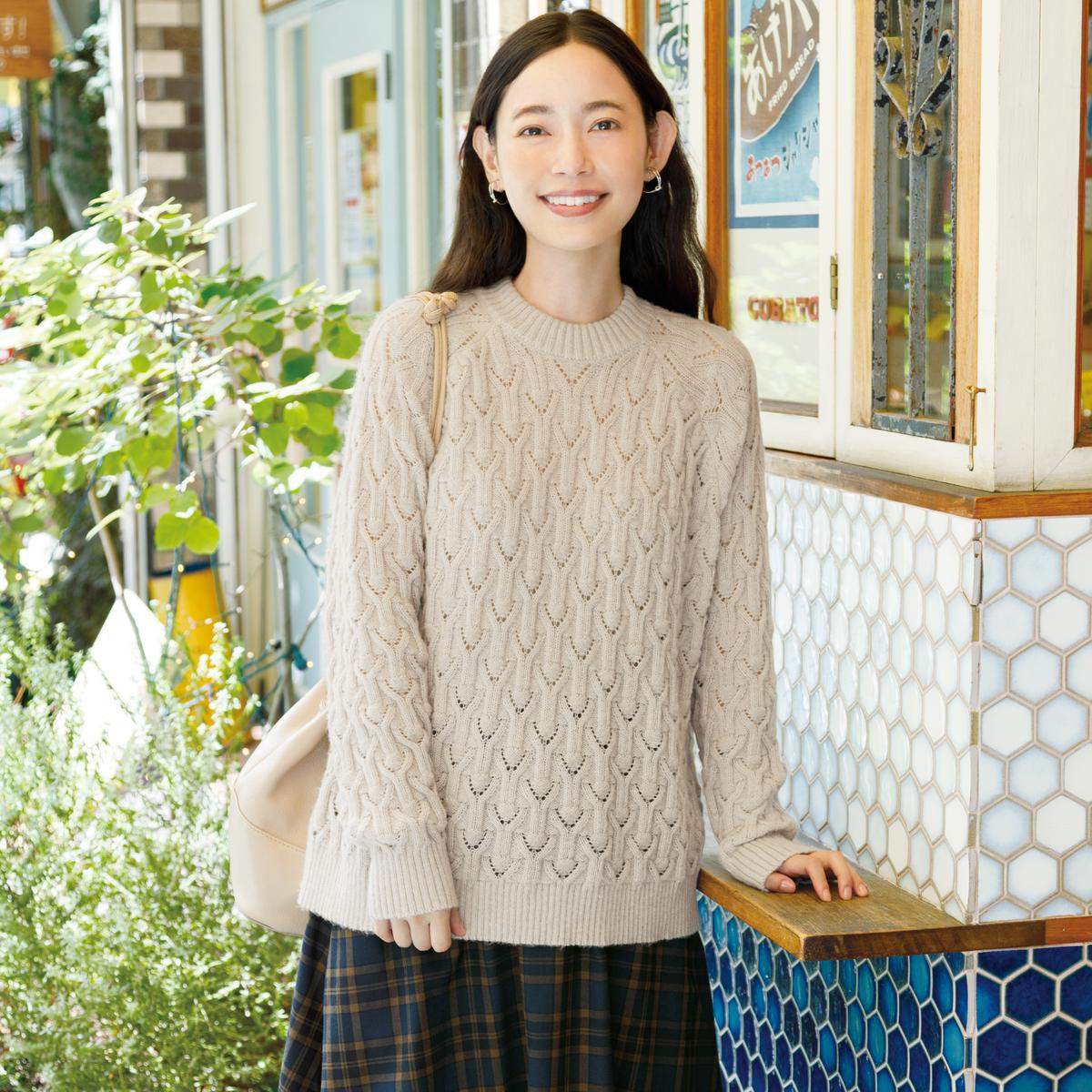 軽い着心地の透かし編みにときめく日常に映えるニット