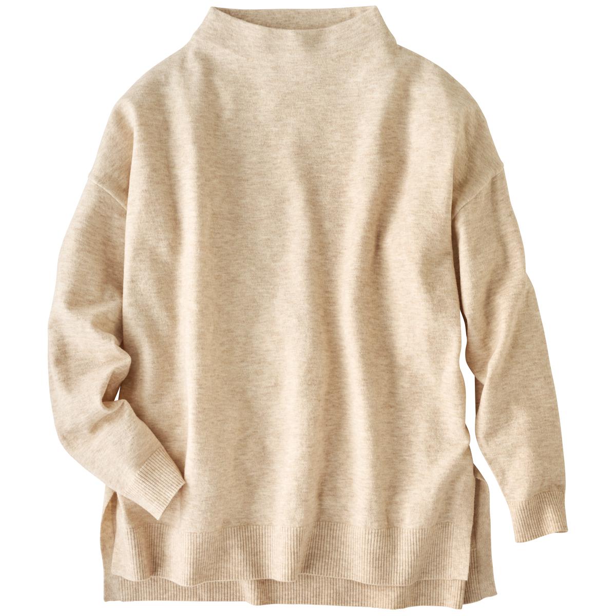 -お買い得ポイント-高見えが叶うハイゲージニット。ゆったりとしたシルエットでレイヤードスタイルも楽しめます。-デザイン-モックネックが上品な印象の着回し力の高いシンプルニットです。裾は前後差のあるスリット入りでスタイルアップにもお役立ち。-素材特徴-洗濯機で丸洗いOKのお手軽ニットです。