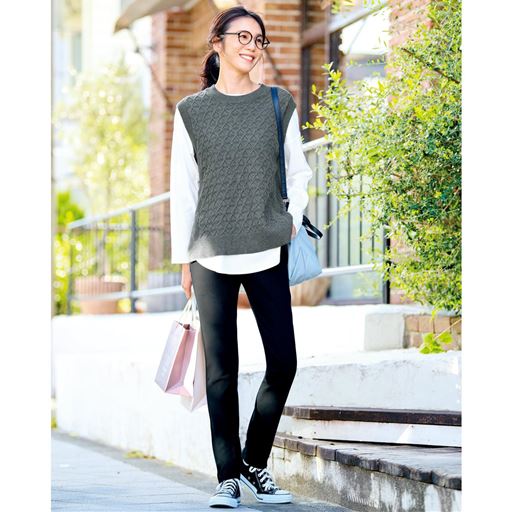 1枚かぶるだけでおしゃれ見えコーデが完成。チクチクしにくい綿100%ニットは、肌に優しく年間通して使いやすいので1枚持っているととっても便利♪