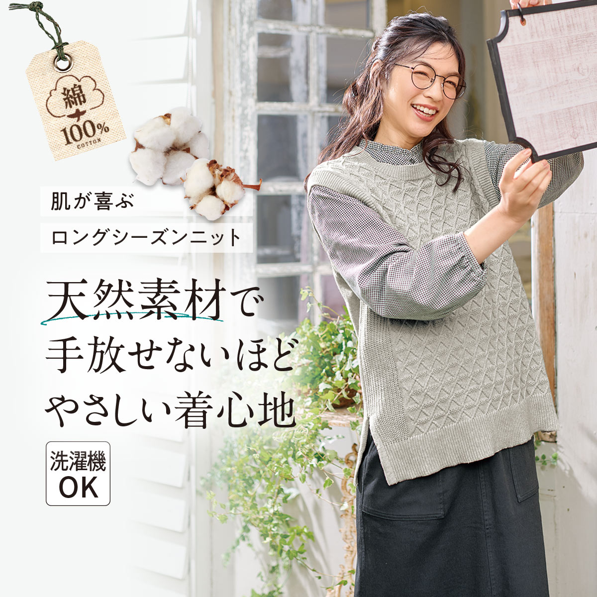 【「心地いいに、ときめく。」商品】肌が喜ぶロングシーズンニット。綿100%で手放せないほどやさしい着心地!