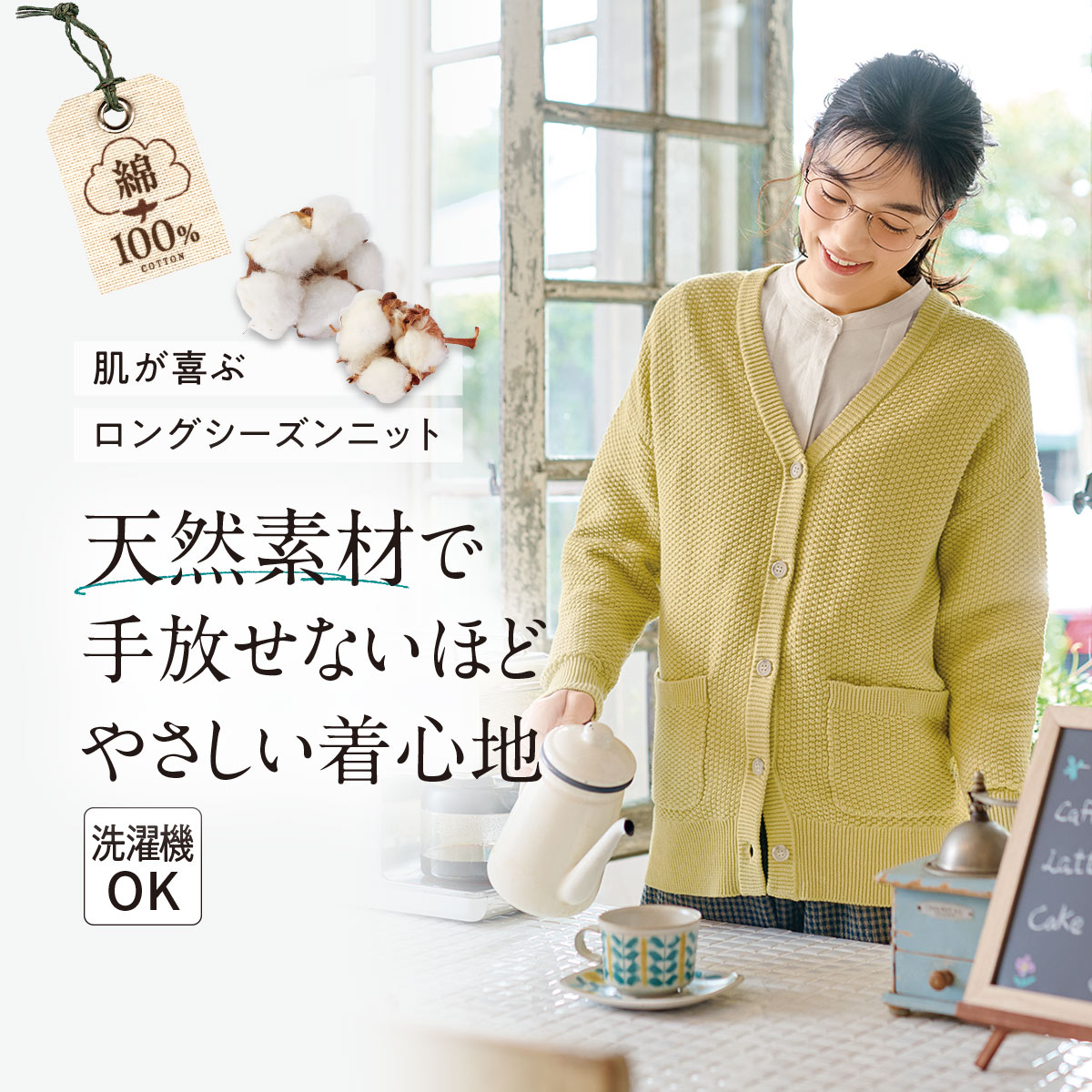 綿100%ここちまとうカーディガン