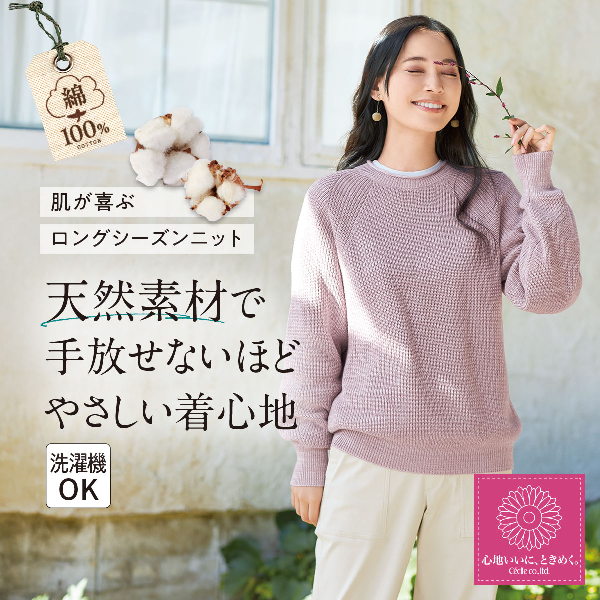【「心地いいに、ときめく。」商品】肌が喜ぶロングシーズンニット。綿100%で手放せないほどやさしい着心地!