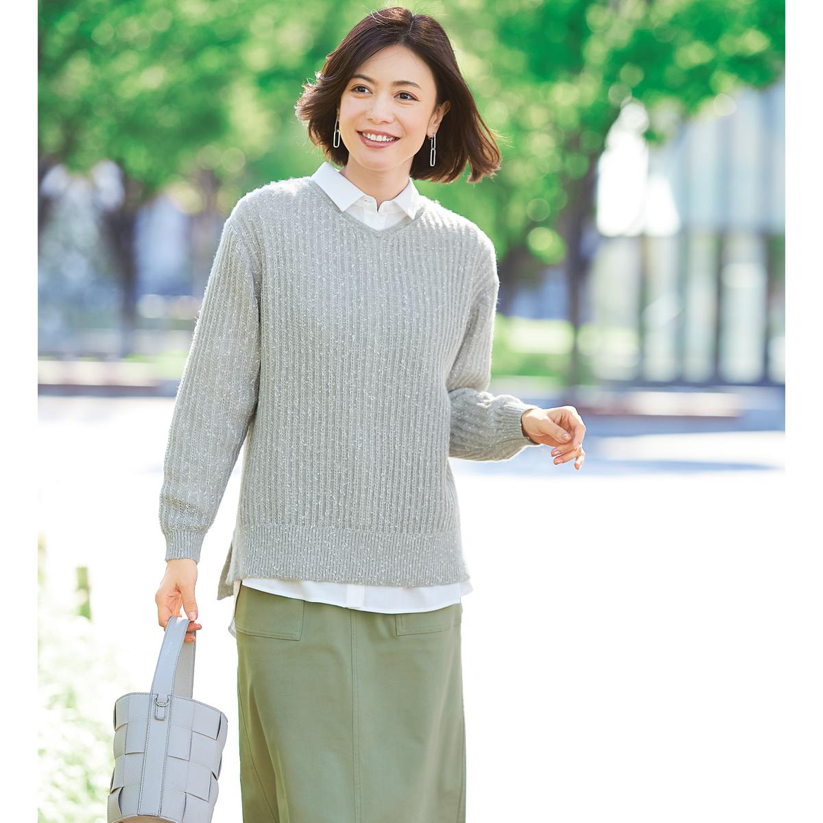 -お買い得ポイント-深すぎないVネックが顔まわりをシャープに見せます。後ろ身頃は、すっきり天竺編み。-デザイン-ネップ糸を使って表情豊かなニュアンス。-素材特徴-表情豊かなネップ糸を仕様。ふんわり軽い着心地です。