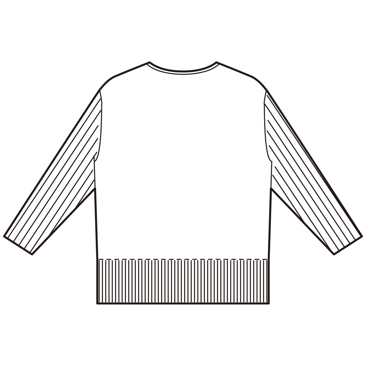 深すぎないVネックが顔まわりをシャープに見せます。後ろ身頃は、すっきり天竺編み。深すぎないVネックが顔まわりをシャープに見せます。