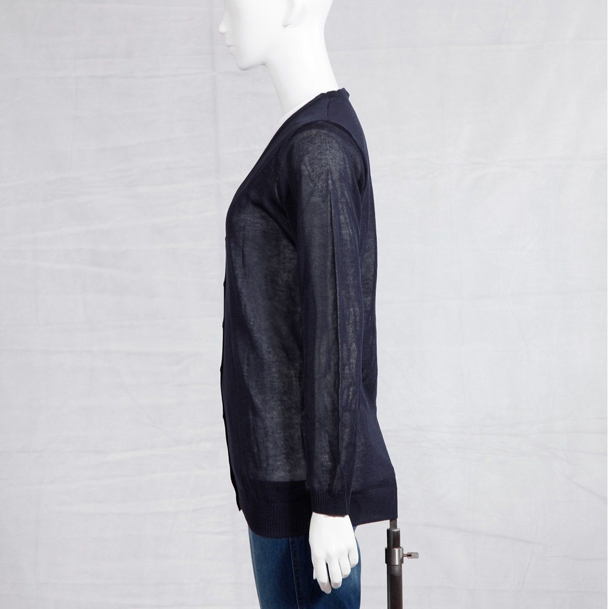 アクリルとナイロンの天竺編みで、ソフトな肌ざわりの中に涼しさを感じるベストなシャリ感