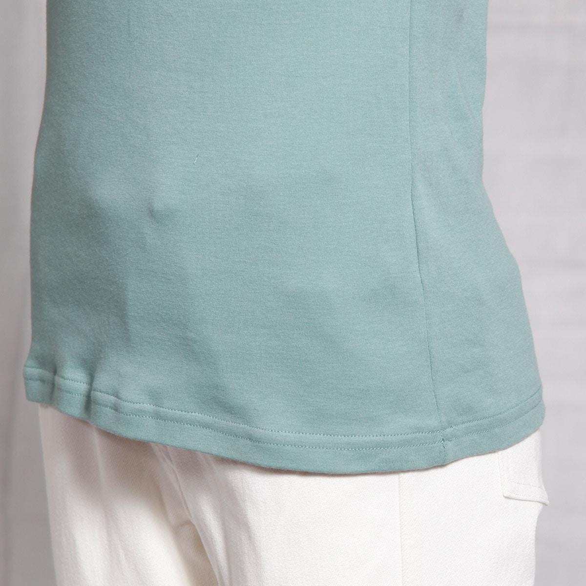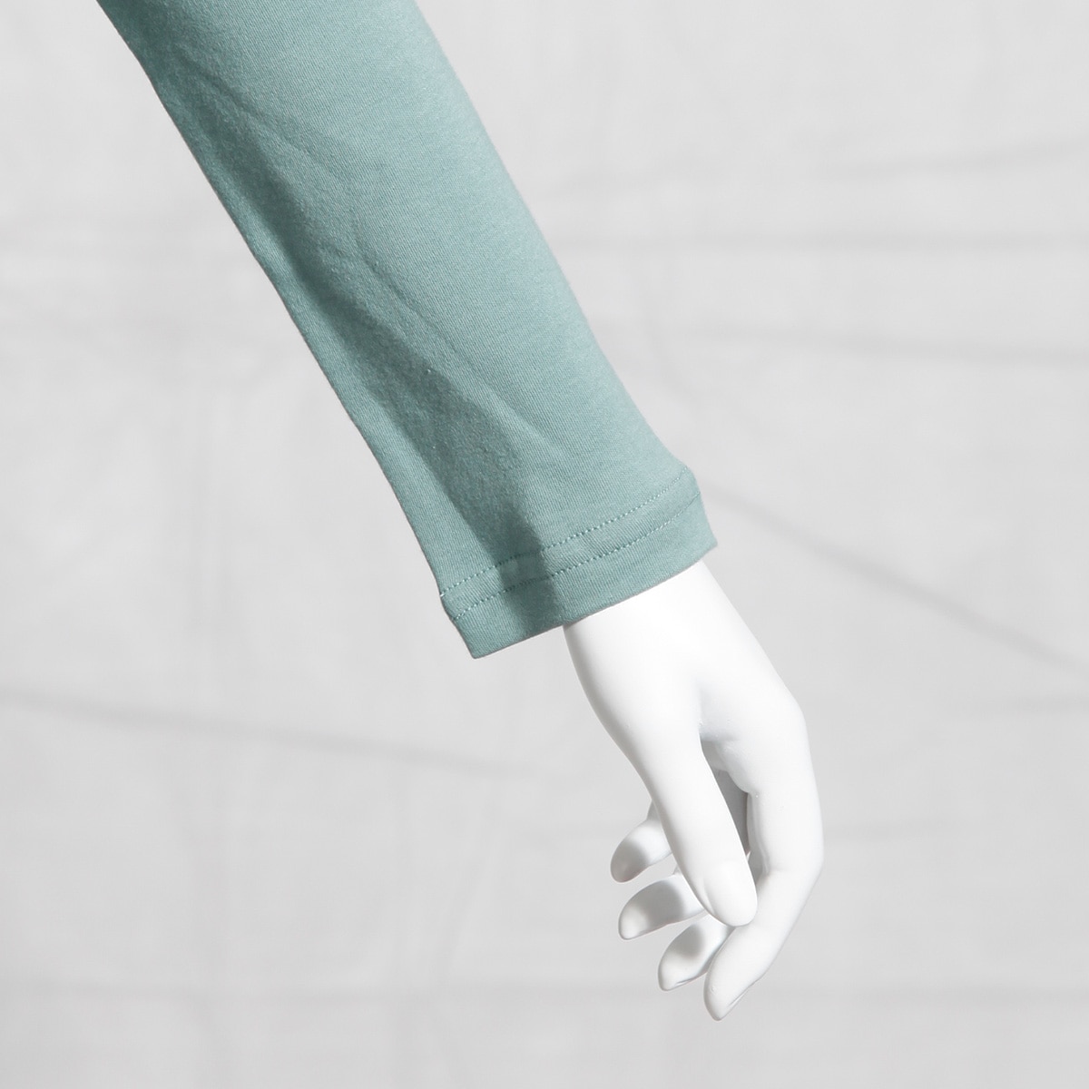 しなやかで肌ざわりのよい綿100%素材は、程よい厚みで1枚でもインナーとしても。洗濯機で洗えるので、お手入れも簡単です。