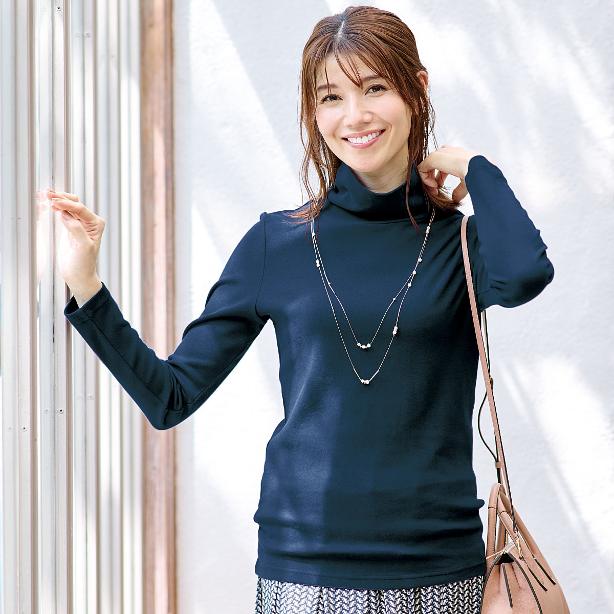 衿元の表情を楽しめるルーズネックのデザインで、しなやかな肌ざわりと着こなしやすいカラバリにもご注目ください。