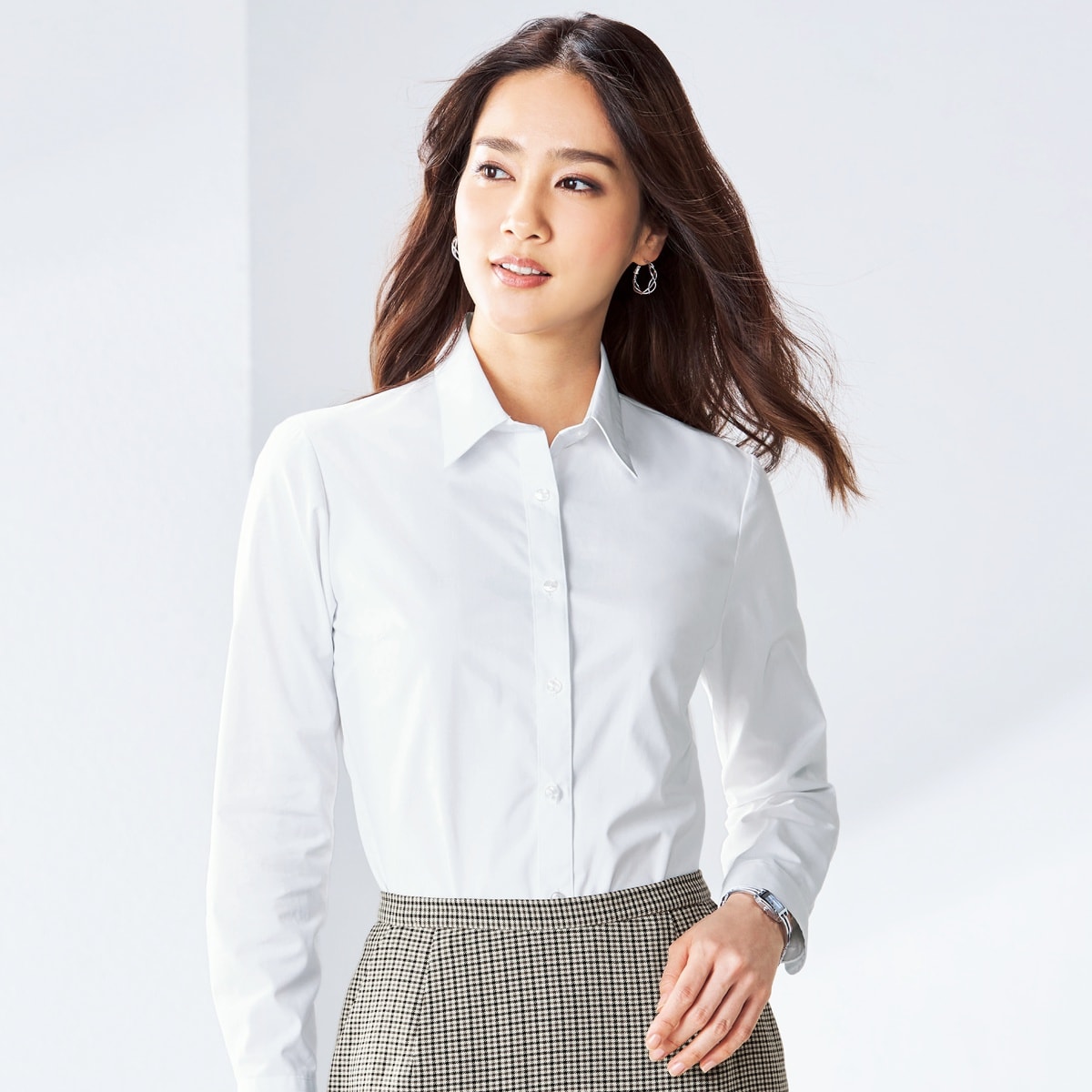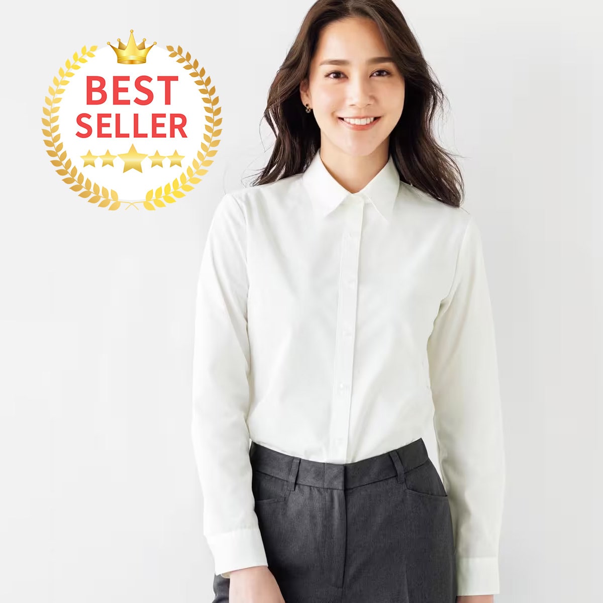 セシールの大定番、超ロングセラーの形態安定シャツ。季節や流行を問わず長く着られるレギュラーカラー(長袖)