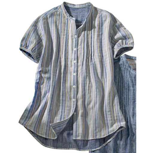 ダブルガーゼピンタック使いチュニックシャツ(綿100%・洗濯機OK)