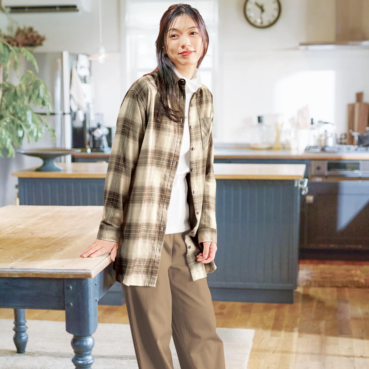 -お買い得ポイント-モニターアンケートで全柄リニューアル!!ボタン閉めでチュニックでもボタンを開けて羽織りでもサマになる、大人に似合うチェック柄を揃えました。-デザイン-太ももまでカバーする丈であったか快適♪羽織りとし重ね着できるように、ゆったりしたシルエットで仕上げました。お客様の声にお答えし、便利なポケットもプラスしてリニューアル。-素材特徴-うっすら起毛したコットンビエラ素材で、ふんわり柔らかくあたたかい。洗濯機OK!