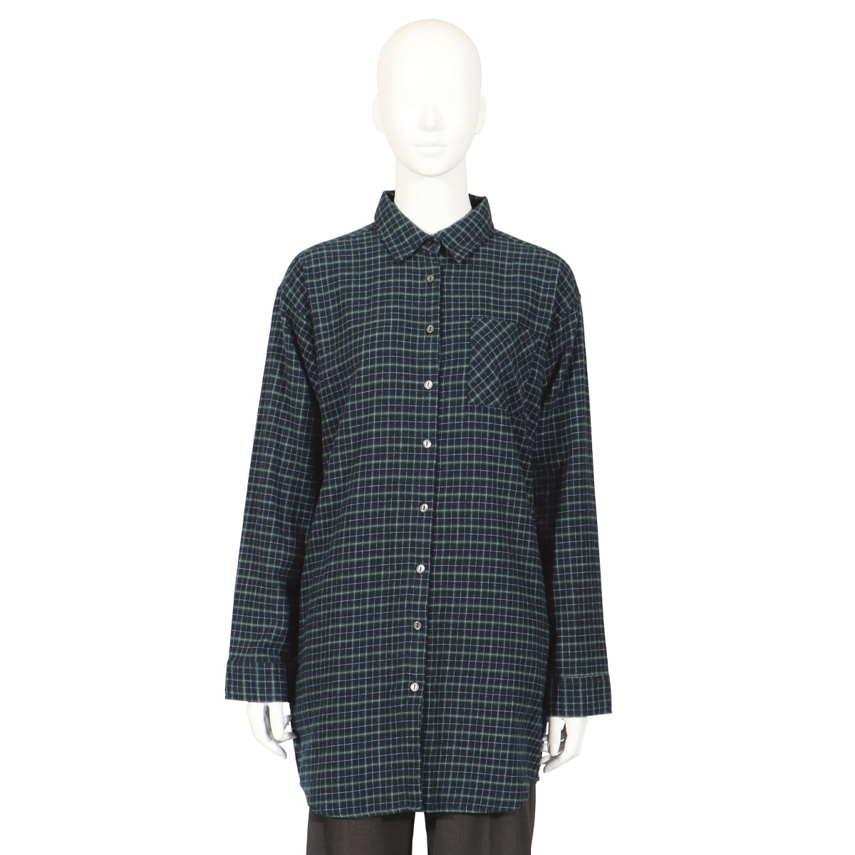ボタン閉めでチュニックでもボタンを開けて羽織りでもサマになる、大人に似合うチェック柄を揃えました。太ももまでカバーする丈であったか快適♪