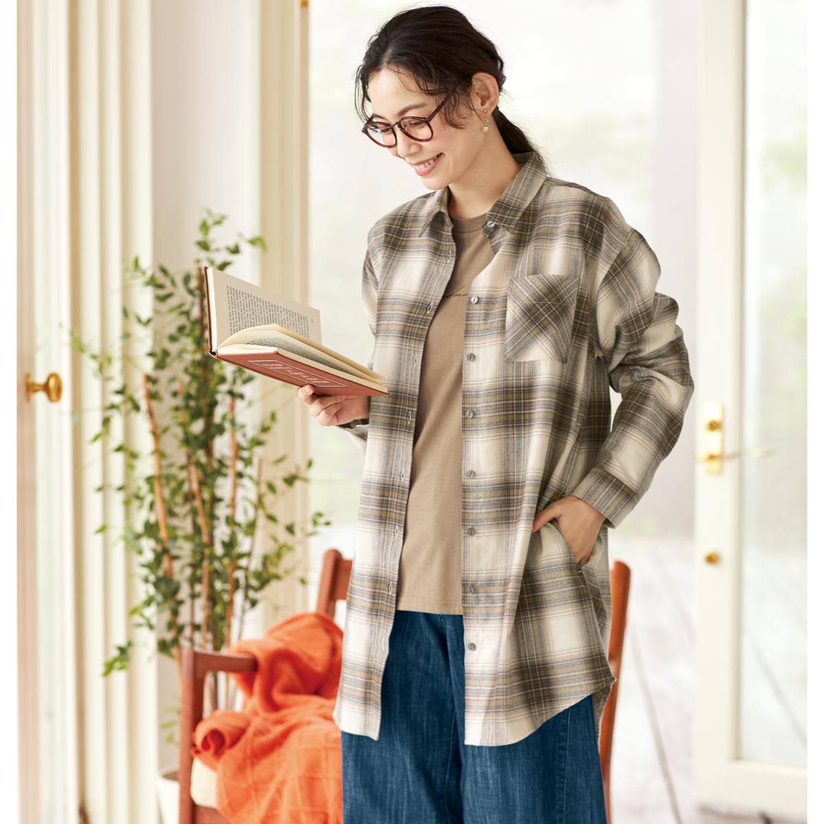 -お買い得ポイント-モニターアンケートで全柄リニューアル!!ボタン閉めでチュニックでもボタンを開けて羽織りでもサマになる、大人に似合うチェック柄を揃えました。-デザイン-太ももまでカバーする丈であったか快適♪羽織りとし重ね着できるように、ゆったりしたシルエットで仕上げました。お客様の声にお答えし、便利なポケットもプラスしてリニューアル。-素材特徴-うっすら起毛したコットンビエラ素材で、ふんわり柔らかくあたたかい。洗濯機OK!