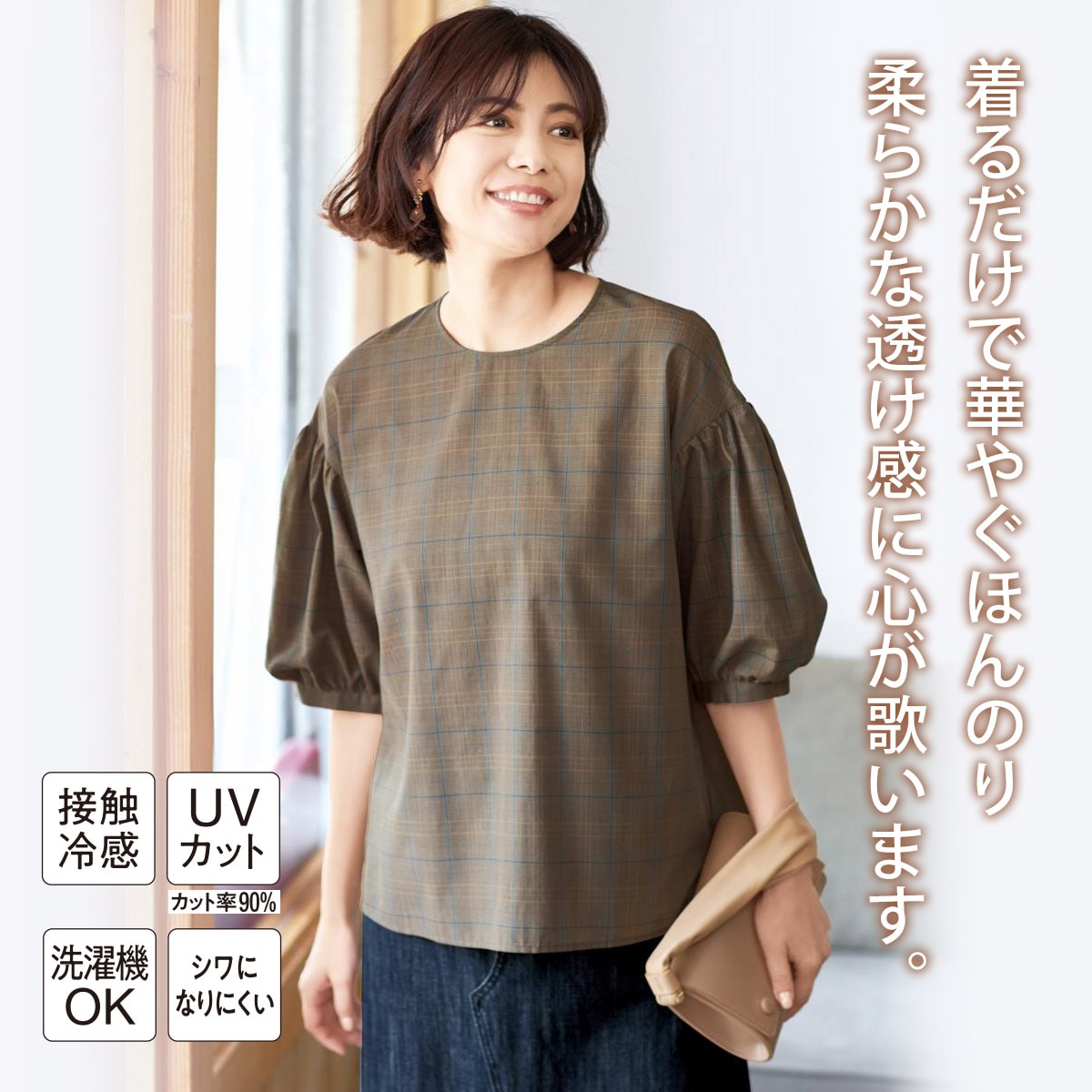 まだまだ続く夏日に心地良くひんやりやわらか、ボリュームスリーブブラウス。