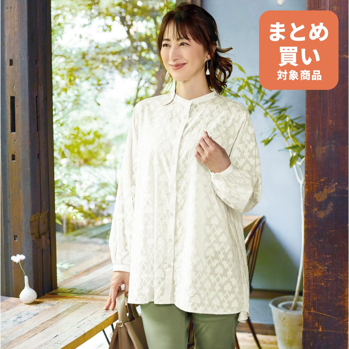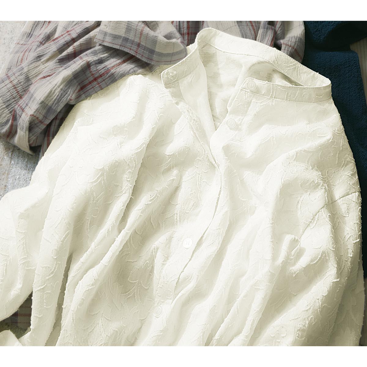 -お買い得ポイント-ふわっと羽織れるゆったりシルエットです。-デザイン-立体感のあるジャカードと透け感が華やぎをプラス。ゆったりしたシルエットと長めの着丈で気になるところをカバーできます。-素材特徴-綿100%素材の優しい肌あたりに、ジャカード織りの高級感が加わった、風合いの良い生地です。