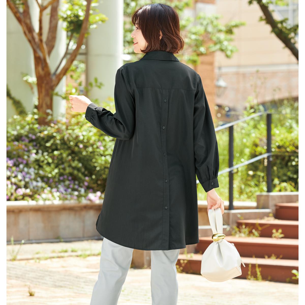 後ろボタンデザインロングシャツ