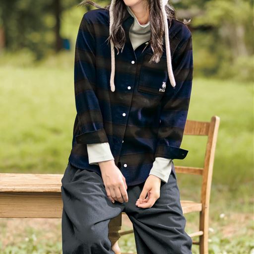 -お買い得ポイント-羽織って、重ねて1枚で大活躍。ナチュラルな風合いが魅力です。-デザイン-左胸にエルクの可愛い刺しゅう入り。柔らかなチェック柄がかわいい。-素材特徴-ふんわり起毛感のあるあたたかな肌ざわりです。