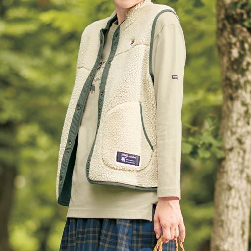 -お買い得ポイント-ボアベストを羽織るだけで冬ムード満点なおしゃれスタイルが完成します。-デザイン-左胸に可愛いエルクの刺しゅうが入っています。スナップボタンにさりげなくあしらわれたエルクが可愛い。ロゴのタグ付き。-素材特徴-見た目のボリュームとは裏腹に、軽くてふわふわとした肌触りの良さが魅力です。