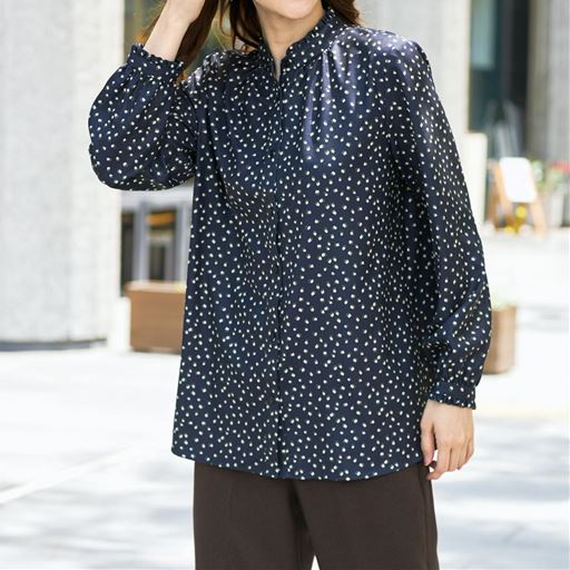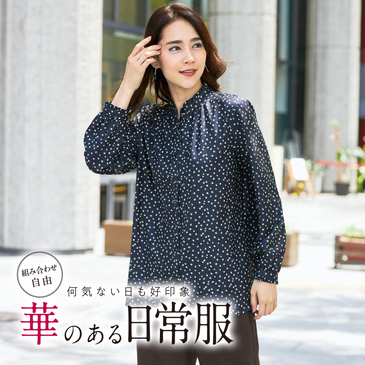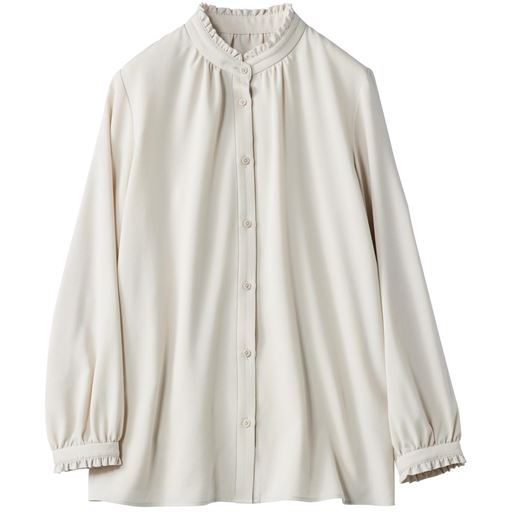 -お買い得ポイント-程よく伸びて快適な着心地の華やかブラウスです。-デザイン-フリル衿がアクセントに。-素材特徴-全方向に伸縮するので、着心地がラク。シワになりにくく型崩れしにくいのもうれしいポイントです。
